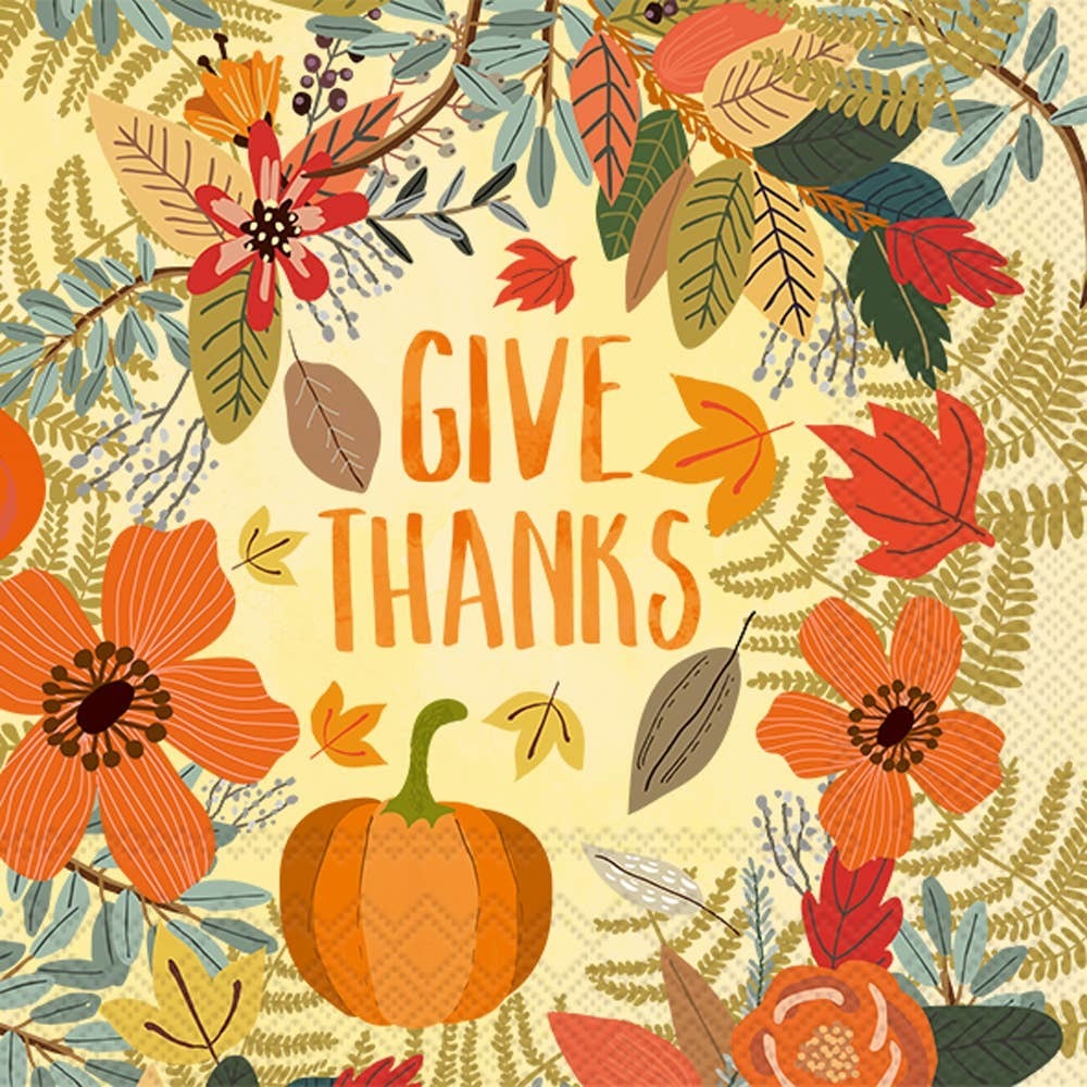 Give Thanks Floral Fall, Paper Cocktail Napkins 20 ct | Boston International
