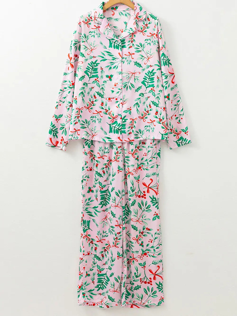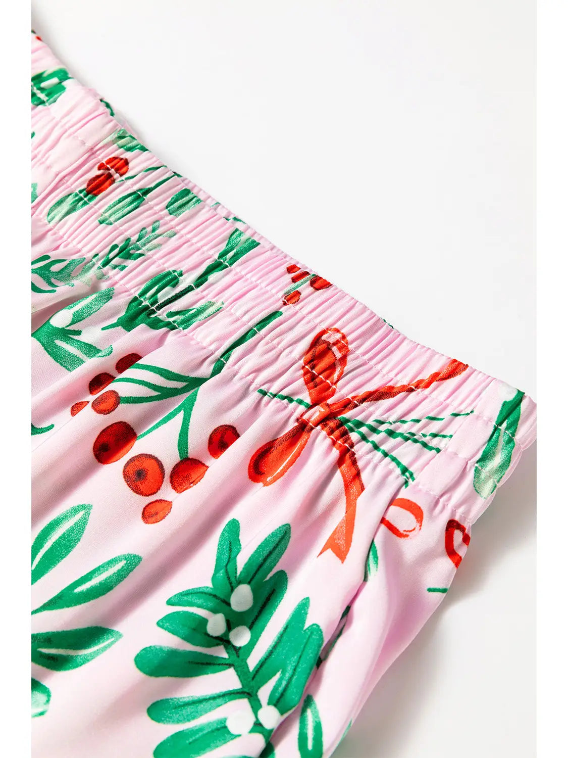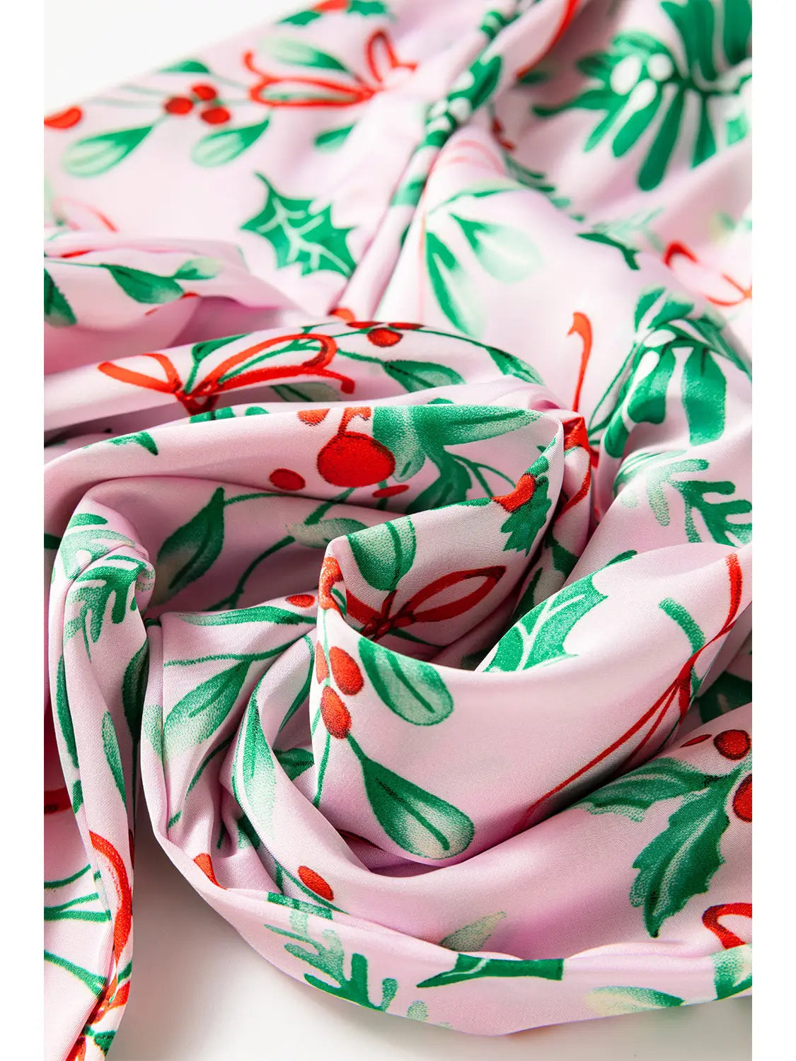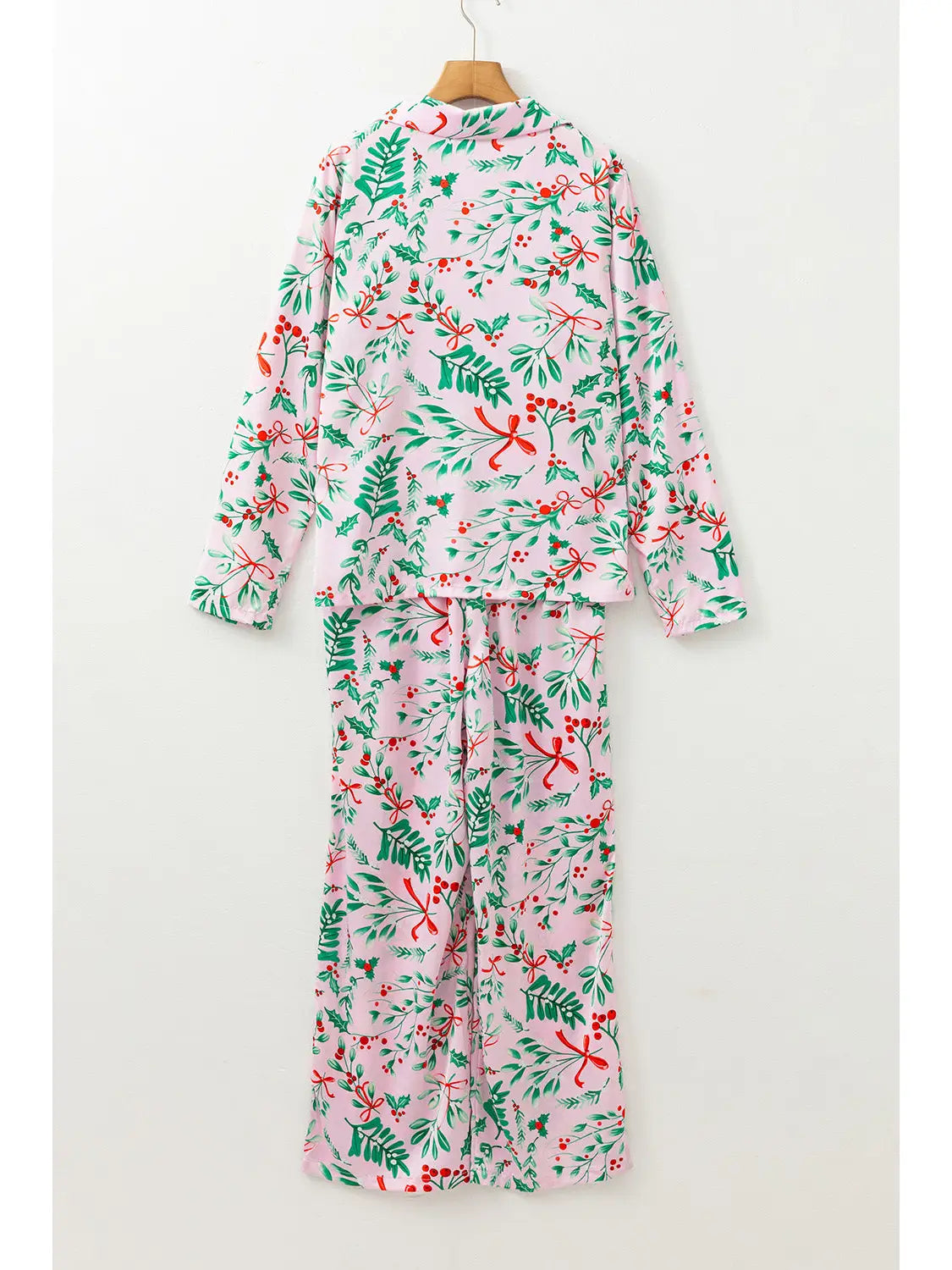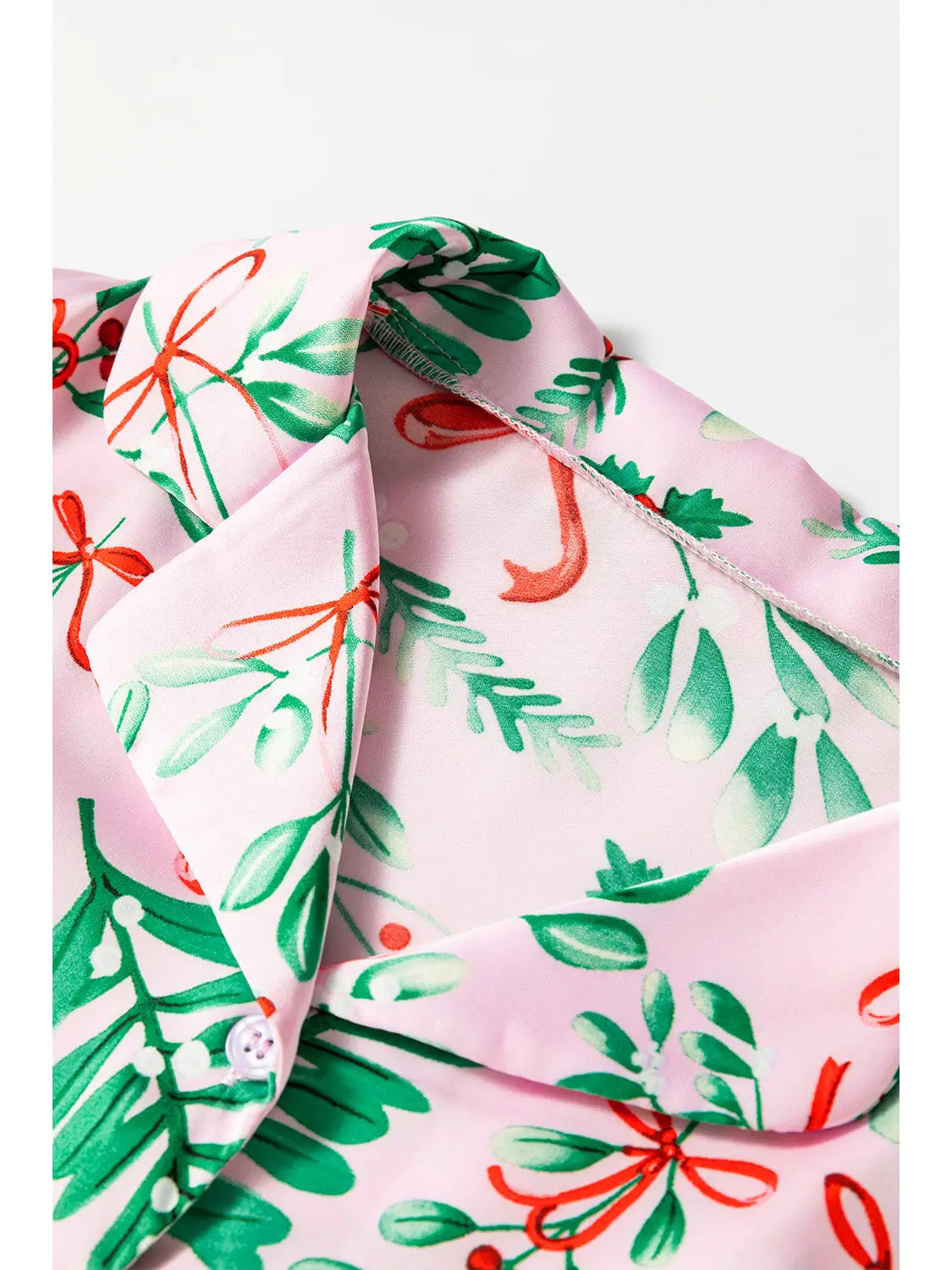 Slip into holiday comfort with this charming two-piece satin pajama set featuring a festive berry print.