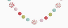 The balls cling to the string, staying put wherever you place them. Featuring 2.5 cm wool balls and 3 cm peppermint shapes, all strung on a crisp white cotton string.