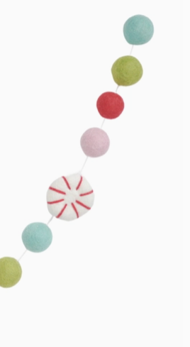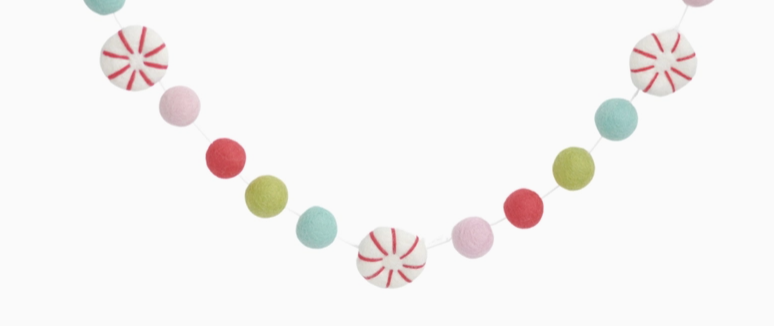 This 6-foot garland includes 24 colorful felt balls in Light Pink, Red, Citrus, and Robin’s Egg, plus 5 festive peppermints—delivered tangle-free and ready to brighten your space!