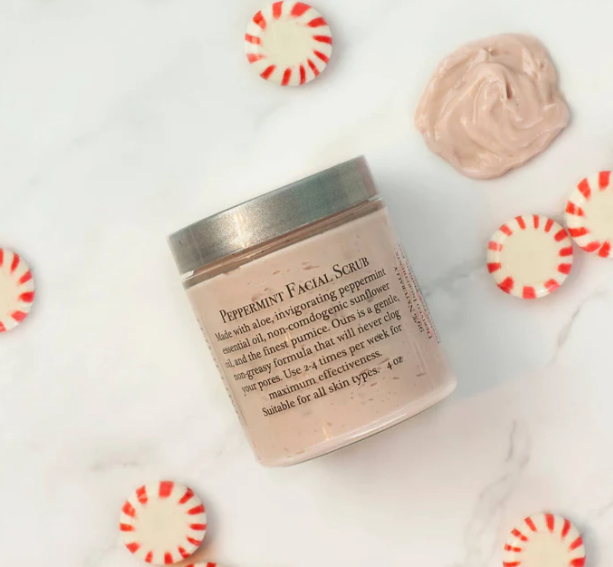 Peppermint Facial Scrub is intended to be used at nighttime exfoliator, 2-4 times per week, gently sloughing the week’s buildup off while providing deep moisture.