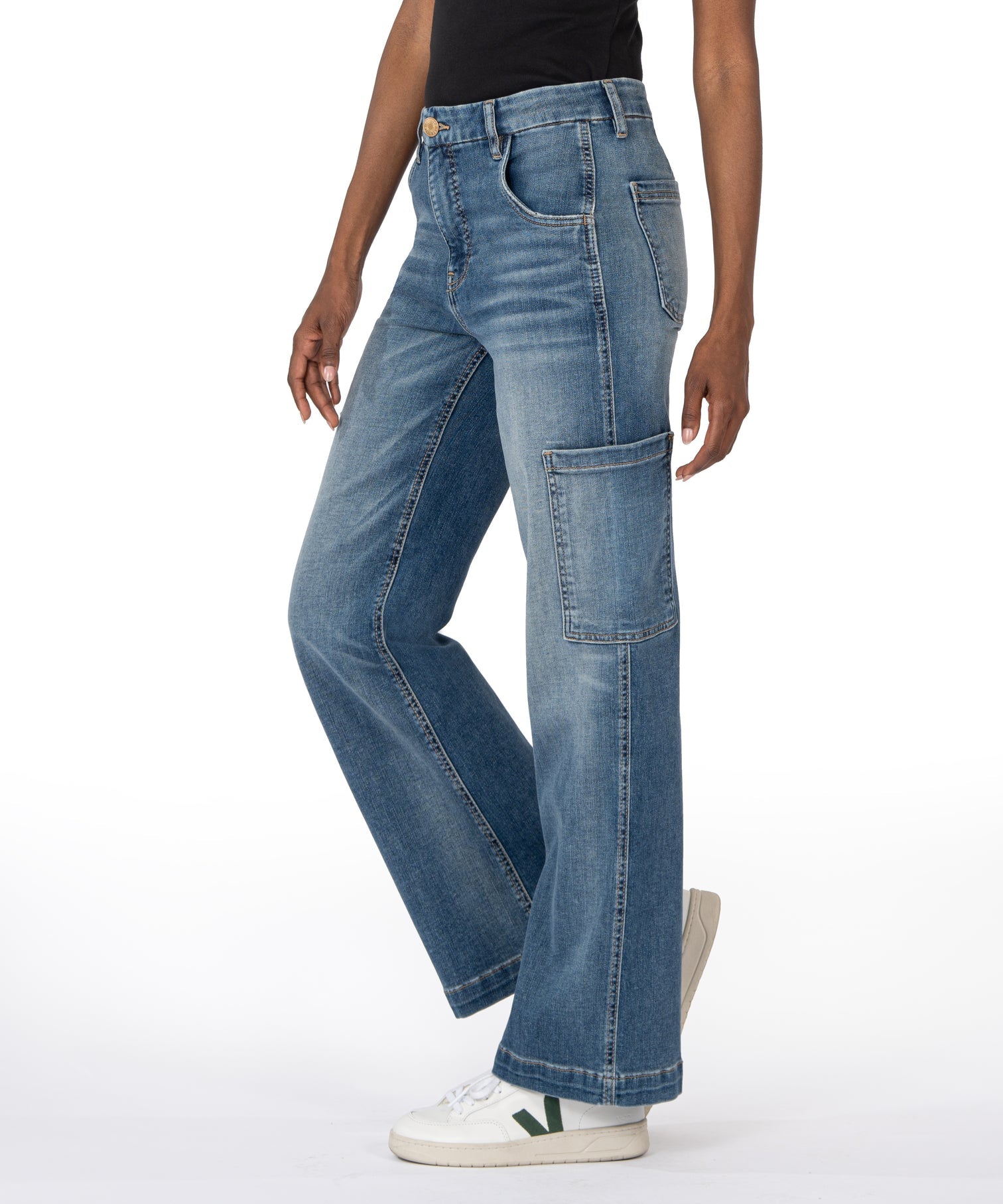 Jodi High Rise Wide Leg Carpenter Jeans, Creative Wash Medium | KUT from the Kloth - SALE
