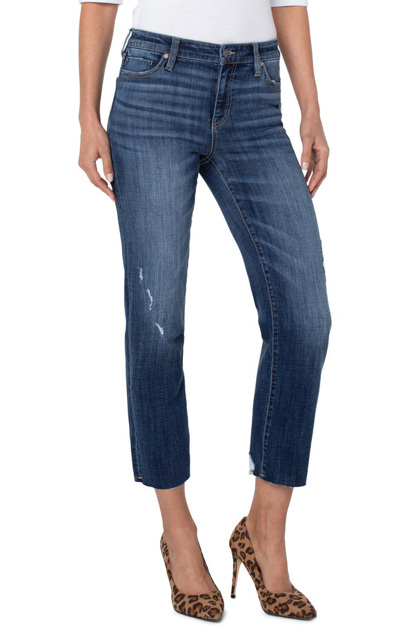 Our mid-rise classic straight jean that creates a slimming and elongated silhouette. This modern eco jean was designed using new laser techniques and processes that give the "Liverpool Look" and uses a fraction of our natural resources.