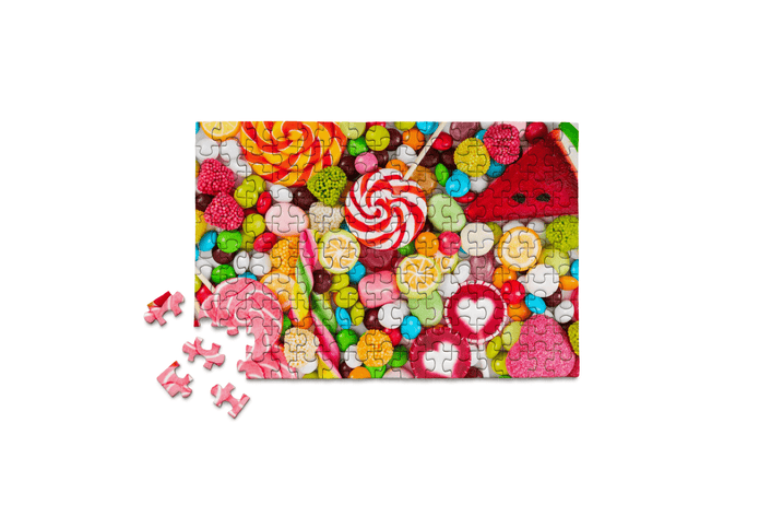 Once completed, the puzzle measures 4" by 6", making it a great size for framing or displaying. Enjoy hours of fun and relaxation with the Mini Puzzles Candy 150 pc Micro Jigsaw Puzzle.