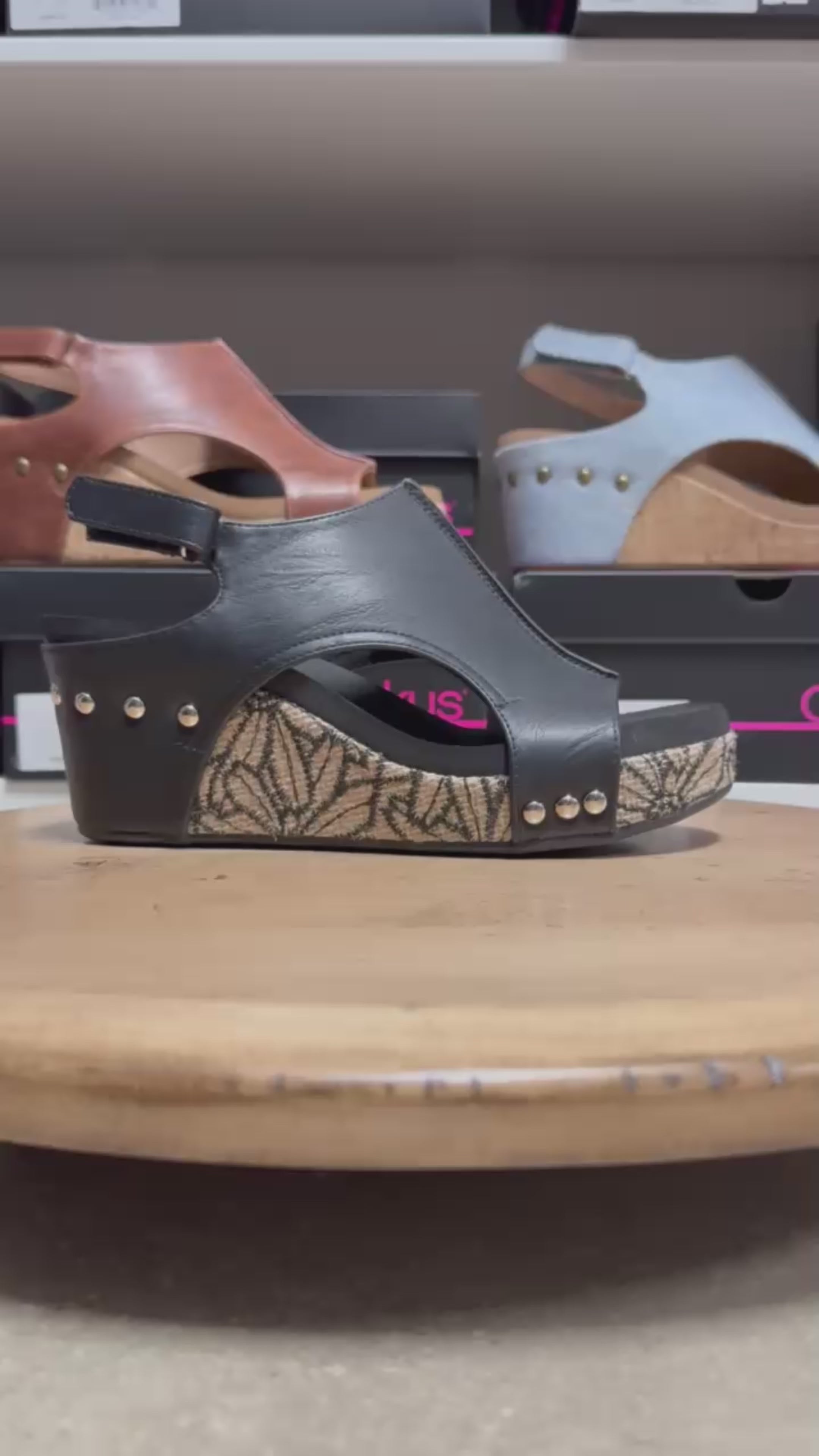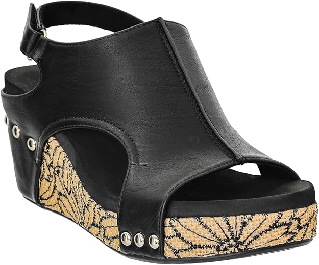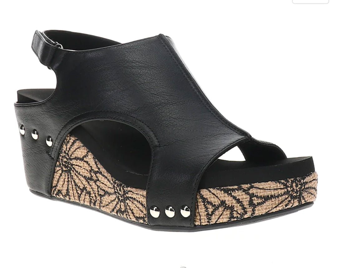 Carley Wedge Sandal, Black Floral Wrap | Corkys