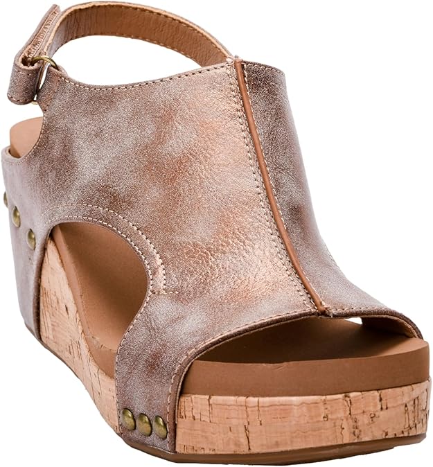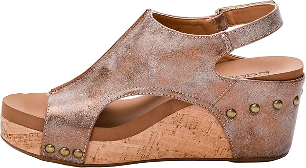 Carley Wedge Sandal, Cognac Washed Metallic | Corkys