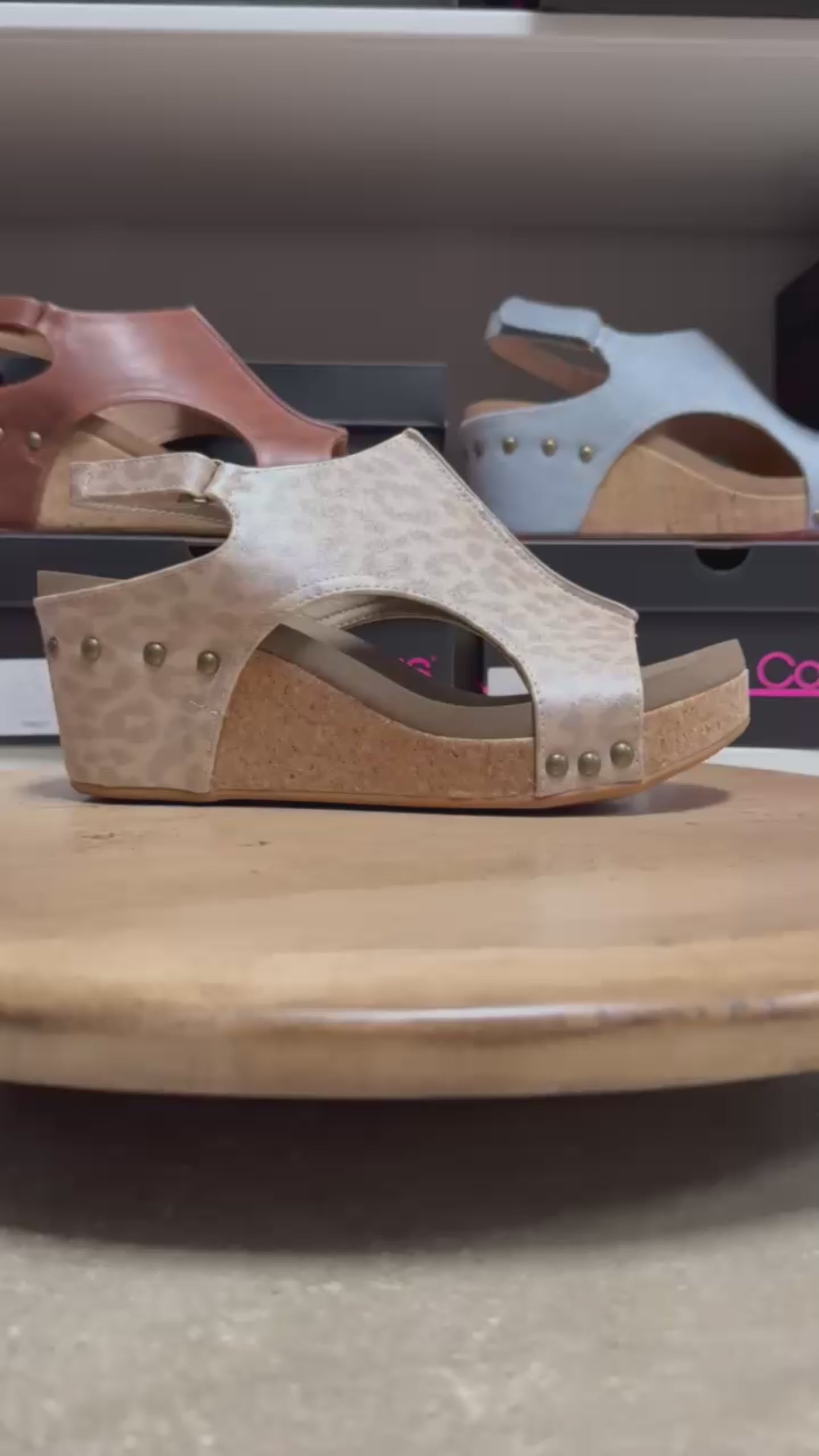 Carley Wedge Sandal, Tan Leopard | Corkys