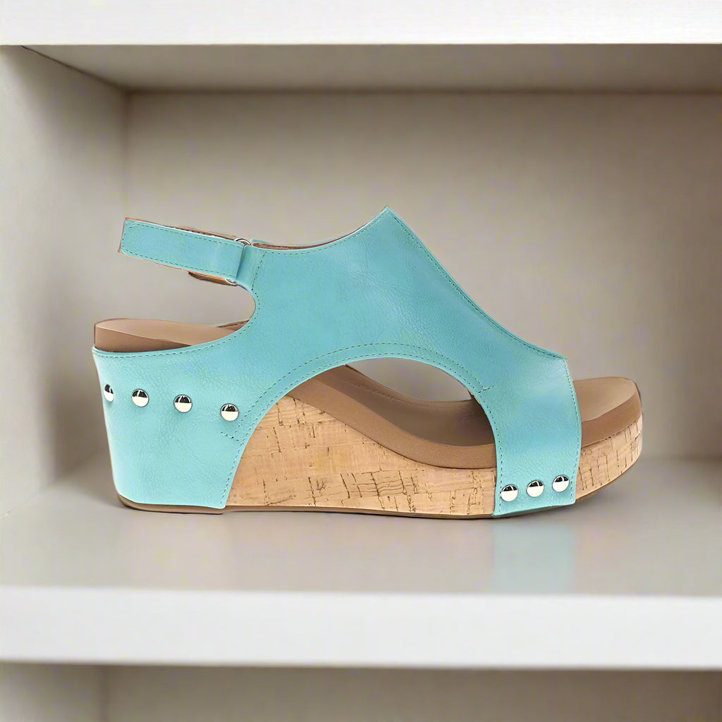 Welcome the summer season with the stylish teal Carley Wedge Sandal from Corkys!