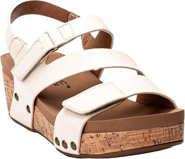 Fit: These Corky's sandals are as pretty as they are functional! They have a low wedge style with a unique strap design and Velcro closure on the ankle strap and toe strap. The squishy neoperene insole provides great support. These have a true-to-size fit. If you are a half size, go up to your larger size.