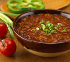 Developed as a mild heat chili, you can add more peppers (or reduce the amount of meat you add) if you like your chili hotter! Mary serves this one at the cabin. The beans, tomato base, and spices are all in the mix.