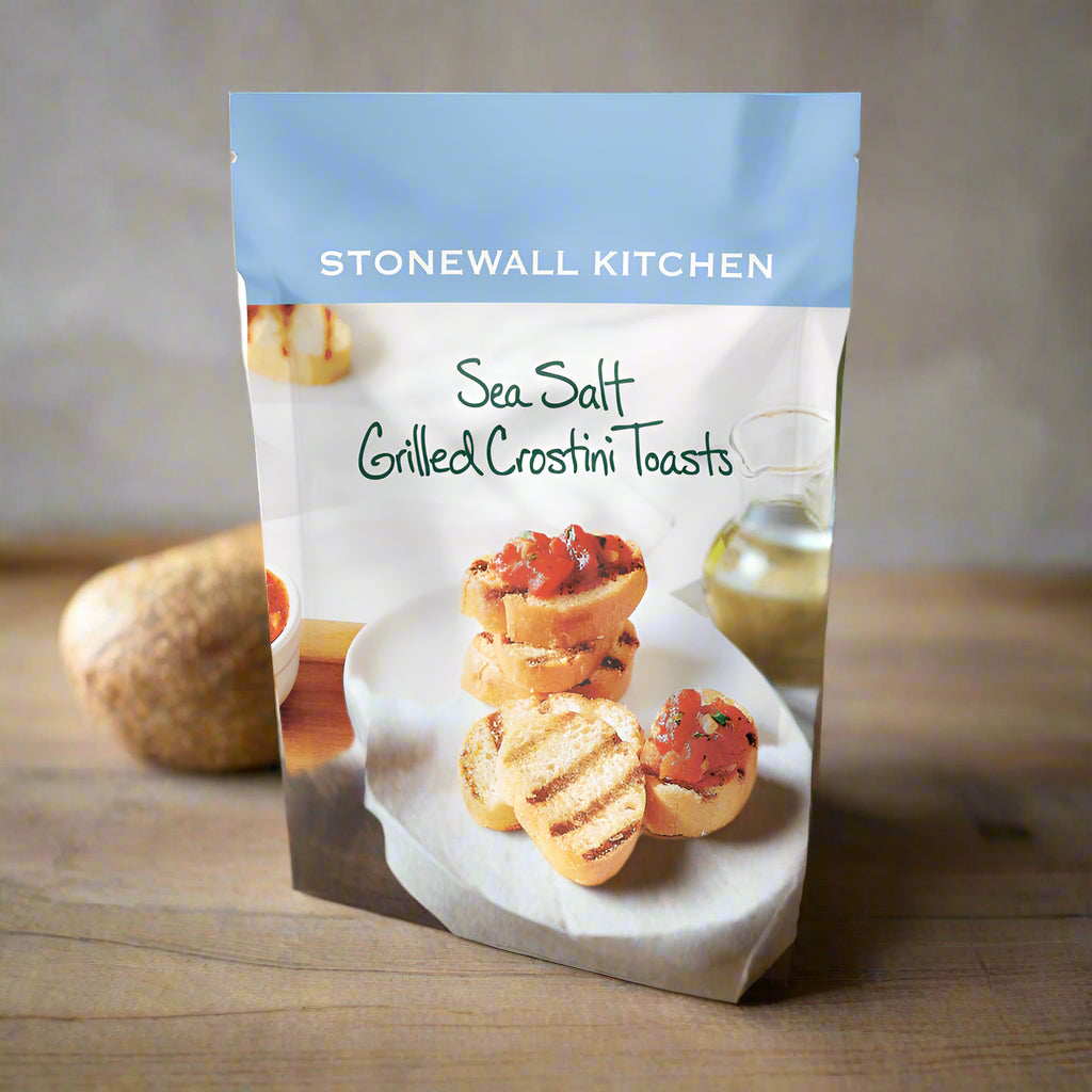 Indulge in the refined taste of these Sea Salt Grilled Crostini Toasts from Stonewall Kitchen.