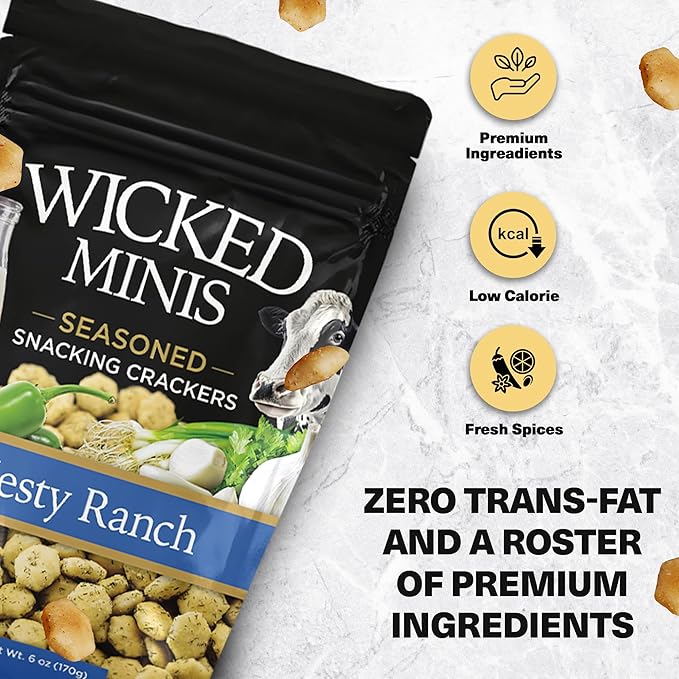 Small Size Big Taste - Add some spice to your life with the Wicked Minis Premium Seasoned Zesty Ranch Crackers.