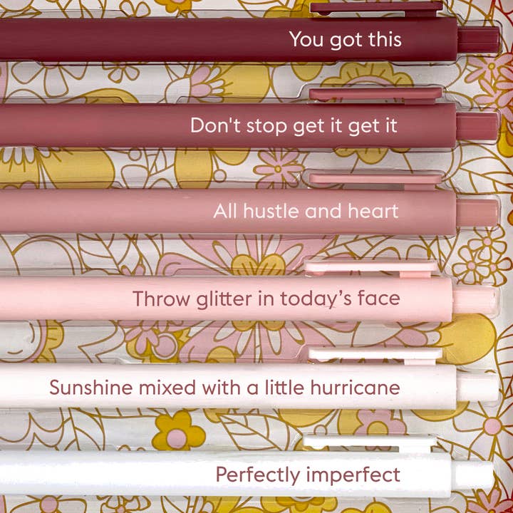This beautifully packaged quotable gel pens have witty sayings, soft touch barrels and black gel ink.