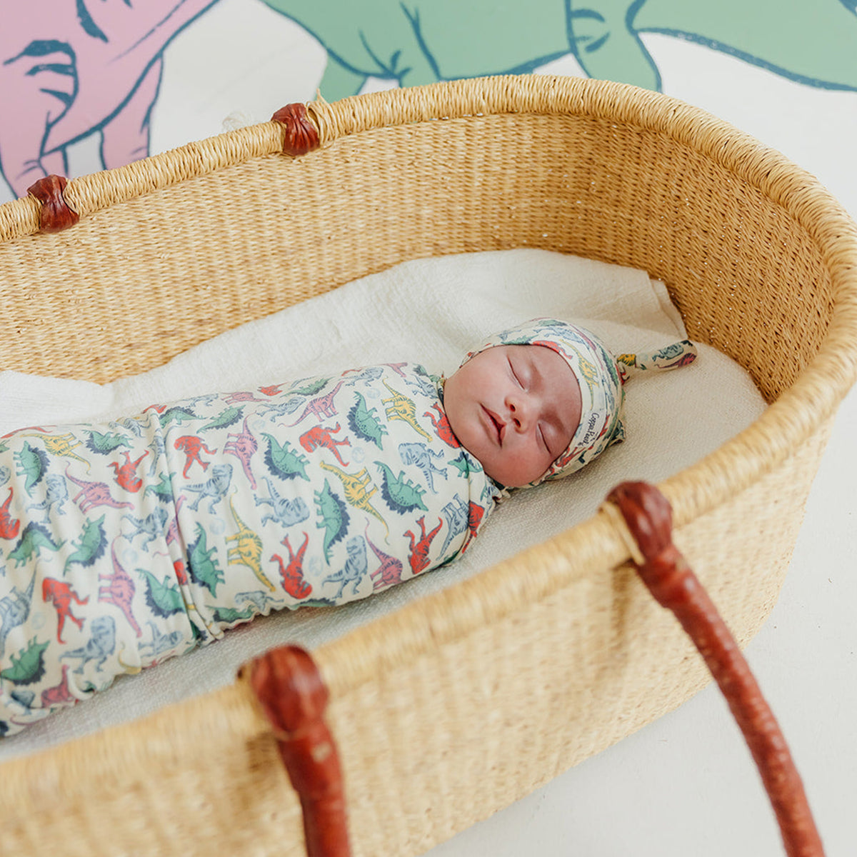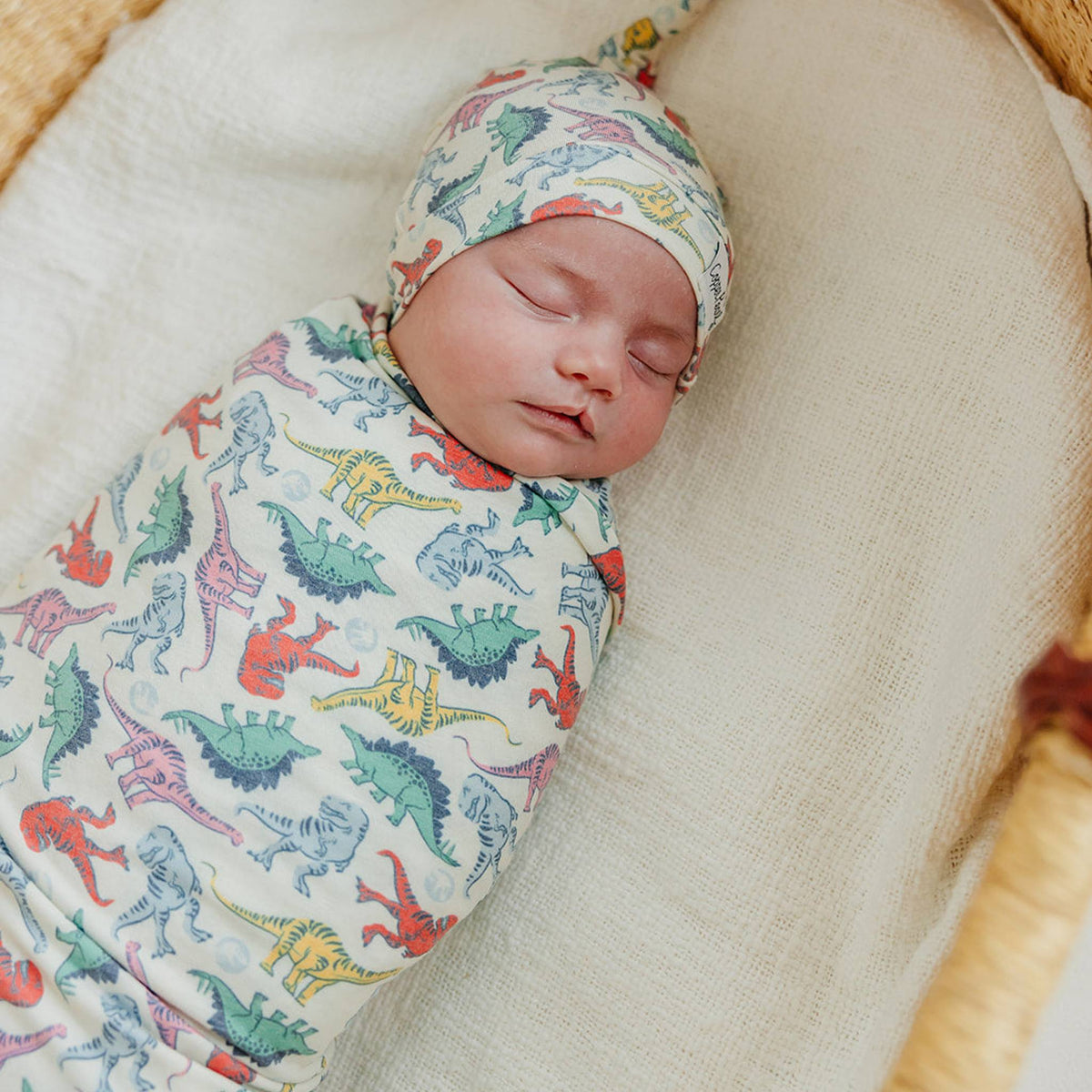 Knit Swaddle Blanket, Dinosaurs of Jurassic Park | Copper Pearl
