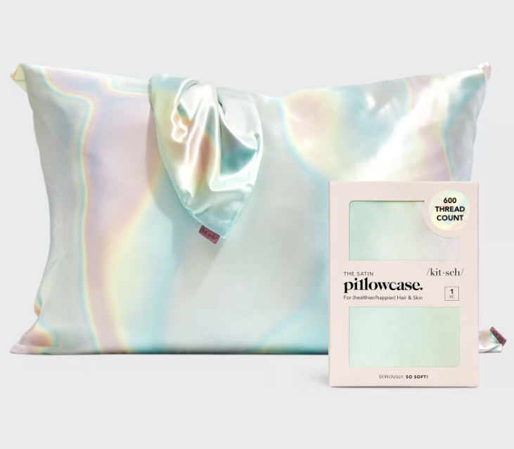 Indulge in the luxurious comfort of the Aura Satin Pillowcase by KITSCH. With its 600 thread-count and silky smooth texture, this pillowcase helps tame frizz and reduce breakage, while also reducing breakouts by absorbing less moisture and dirt.