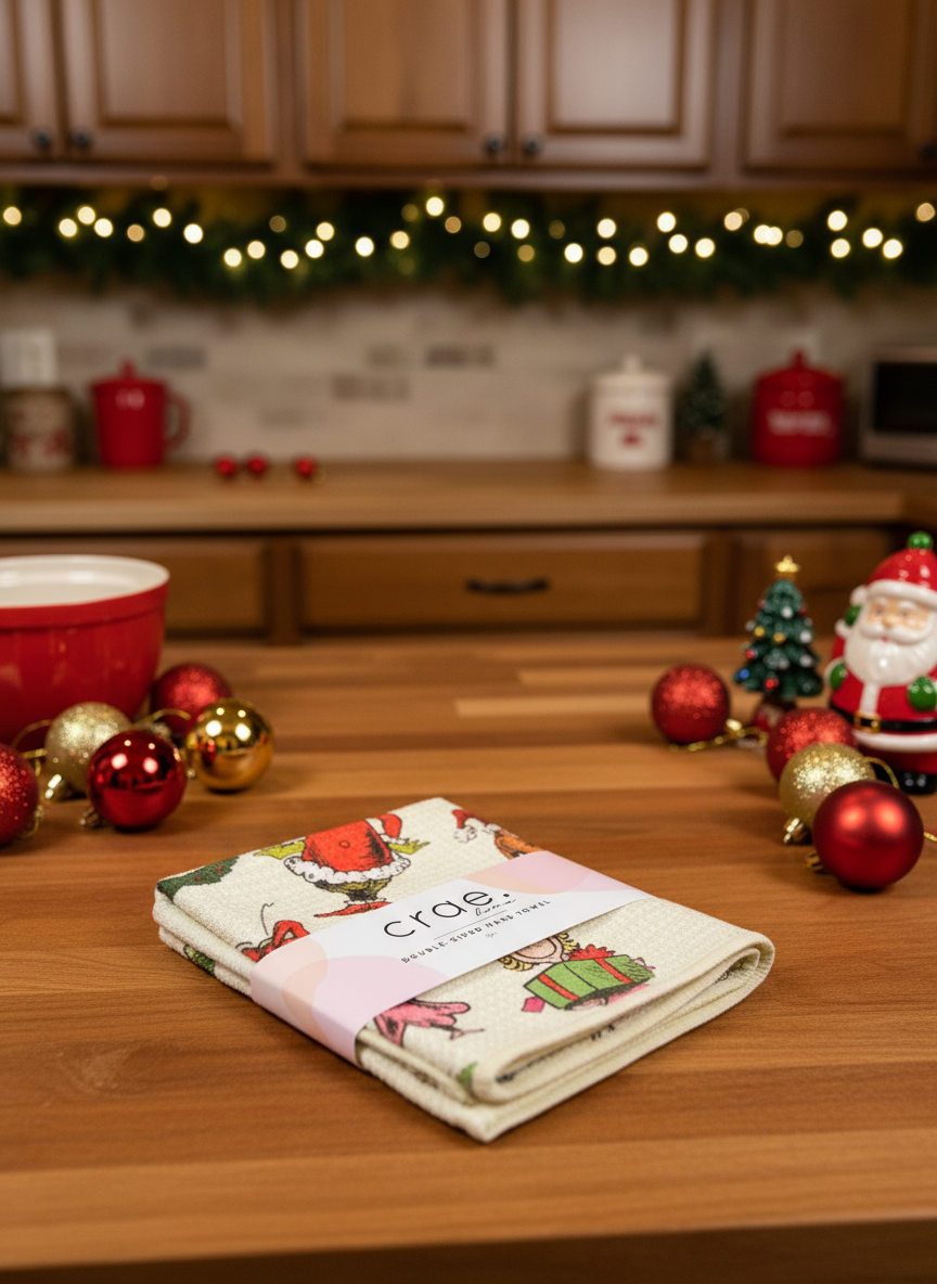 Have a little frill to wipe up a spill. With an easy touch of magic to functionally add a little holiday cheer to your home - with a fun Whoville pattern featuring the Grinch & Cindy.