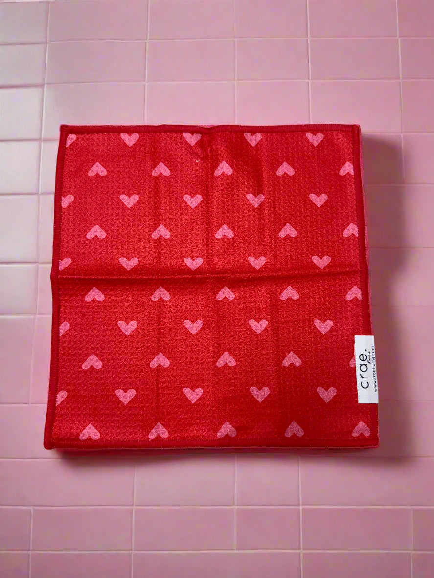 Hearts Microfiber Washcloth, Red/Pink | Crae Home