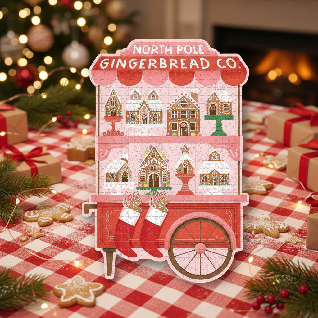 Get ready to piece together some holiday magic with this whimsical gingerbread cart shaped puzzle featuring 615 pieces.