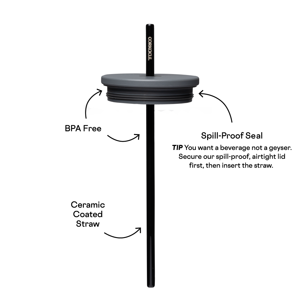 - Silicone Straw Tab- allows for flexible drinking angles