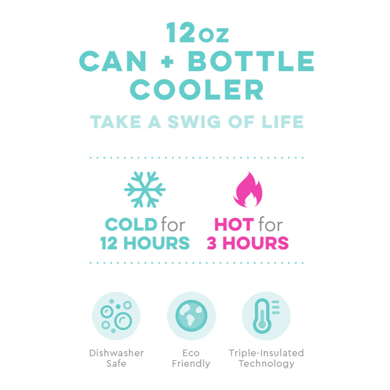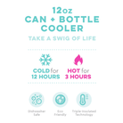 Keep your can or glass bottle beverages cold for 12+ hours (but it won’t take you that long to finish one!). Simply twist off the top ring to insert your can/bottle, then twist the ring back on to secure and you're ready to enjoy! Holds most 12 oz cans and glass bottles including beer, soda, and sparkling water.