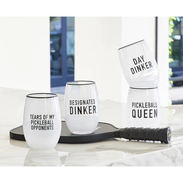 Have some fun and drinks with these stemless wine glasses. Whether you're a pickleball fan, wine lover or both, these fun glasses will enhance your barware collection.