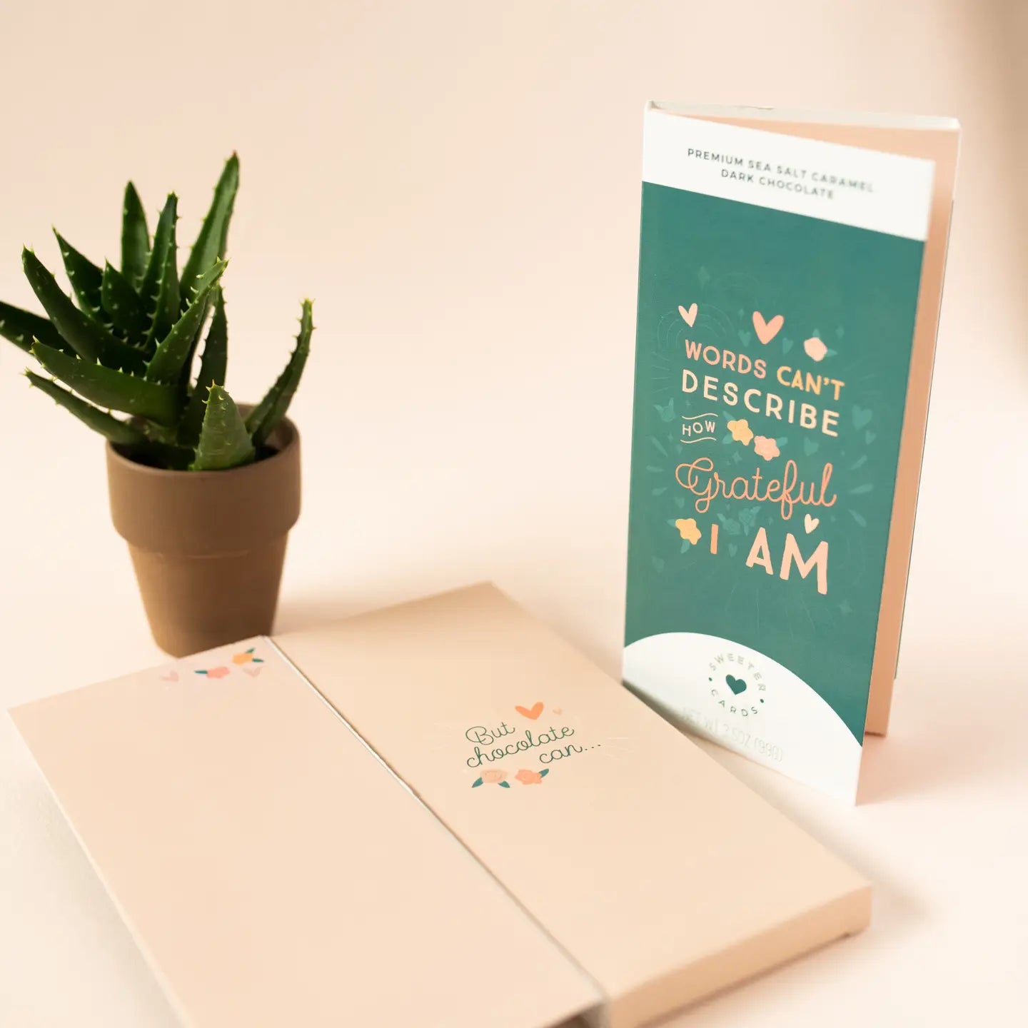 Grateful Card with Sea Salt Caramel & Dark Chocolate Bar | Sweeter Cards