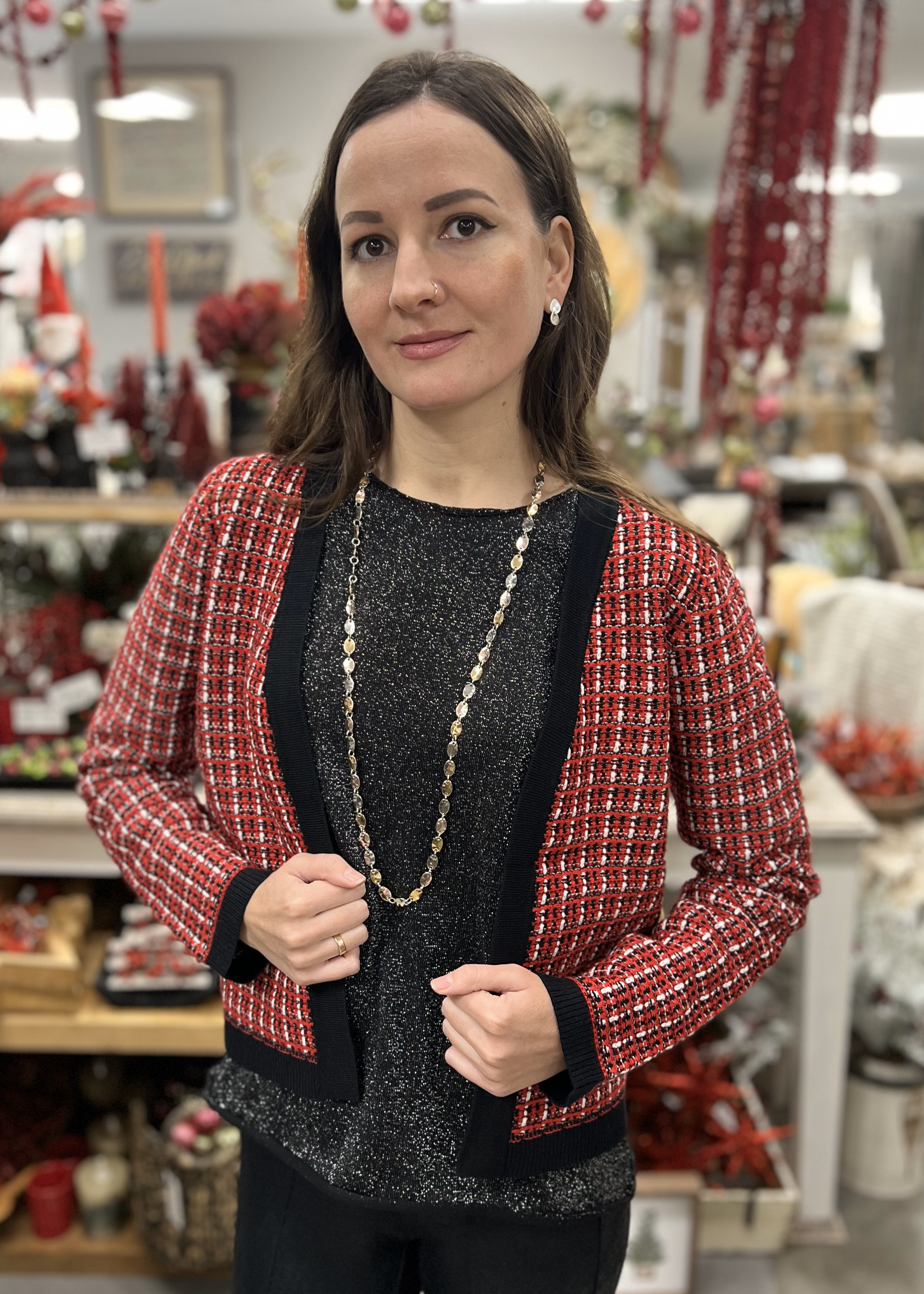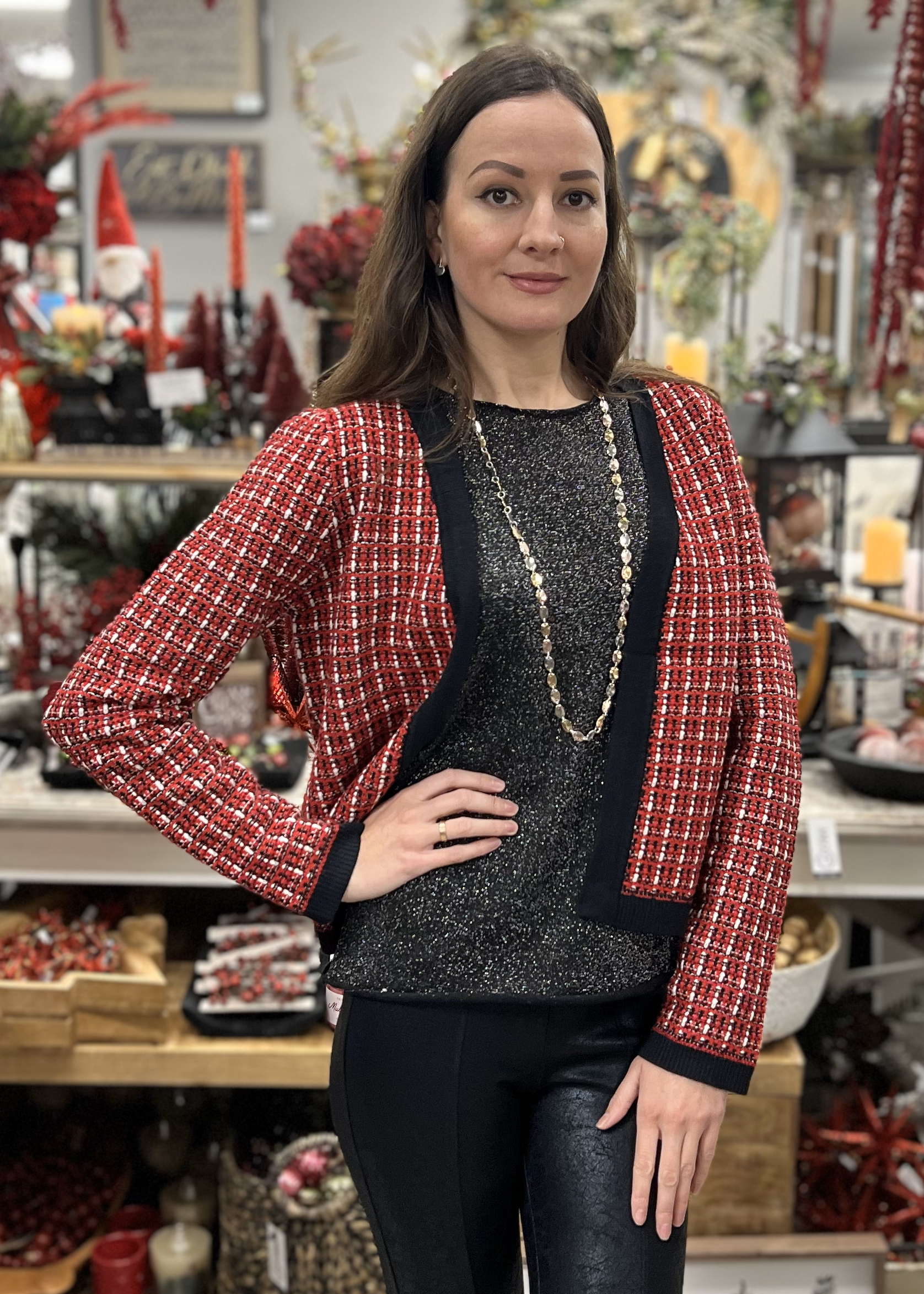Tweed Short Cardigan, Red, Ivory, Black | Staccato - SALE