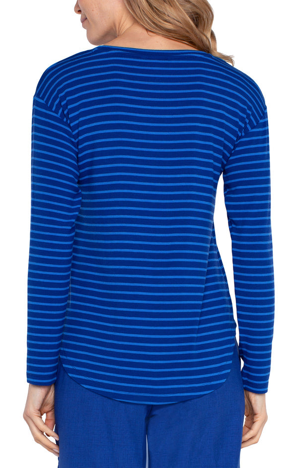 Long Sleeve Drop Shoulder Scoop Neck Stripe Top, Blue Topaz | LIVERPOOL - SALE