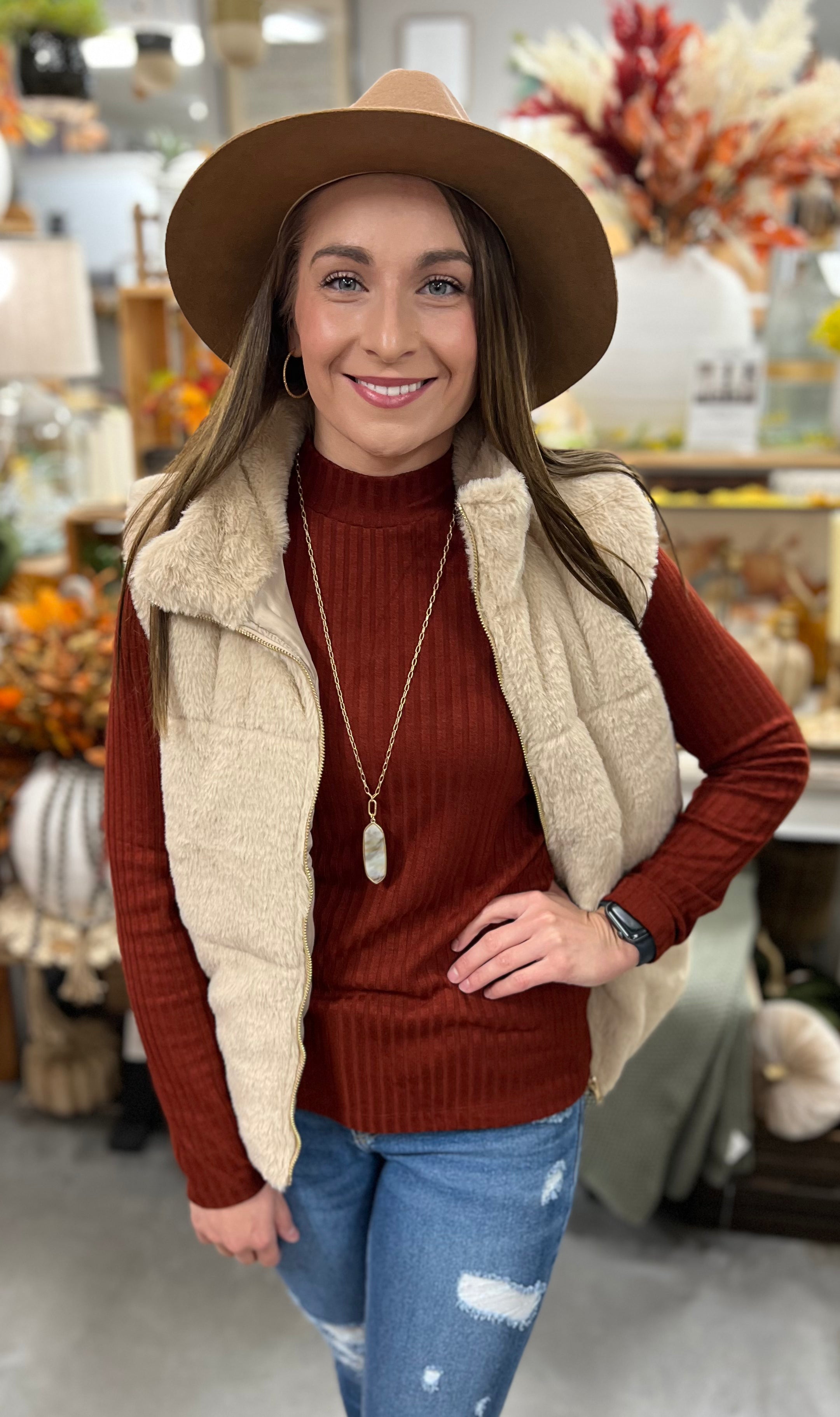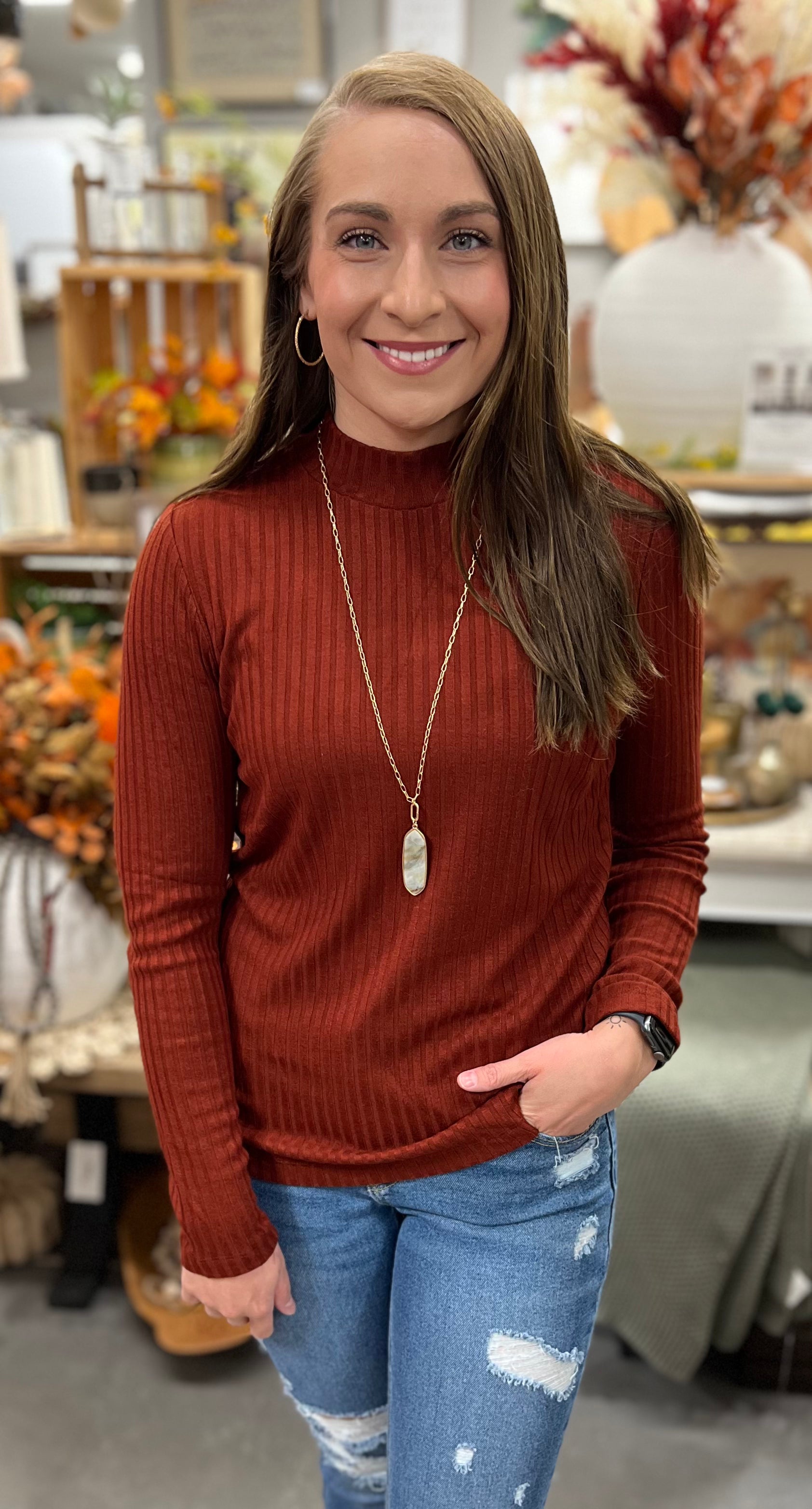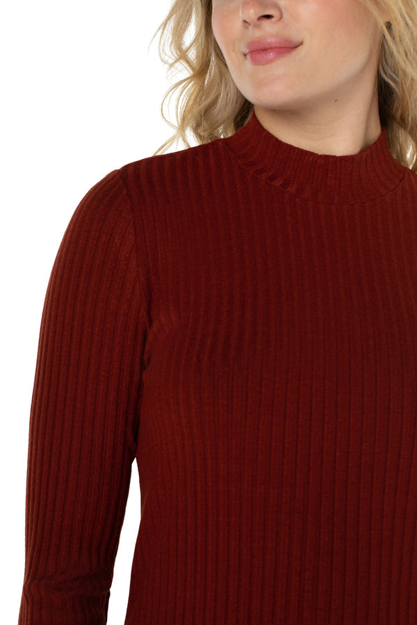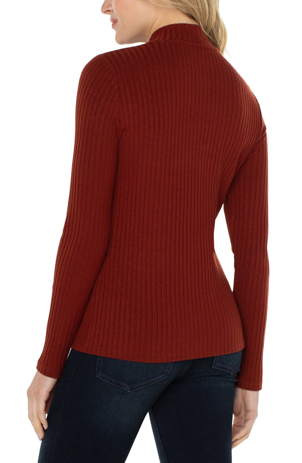 Long Sleeve Mock Neck Rib Knit Top, Deep Cinnamon | LIVERPOOL - SALE