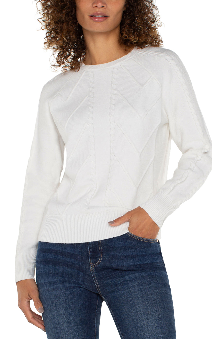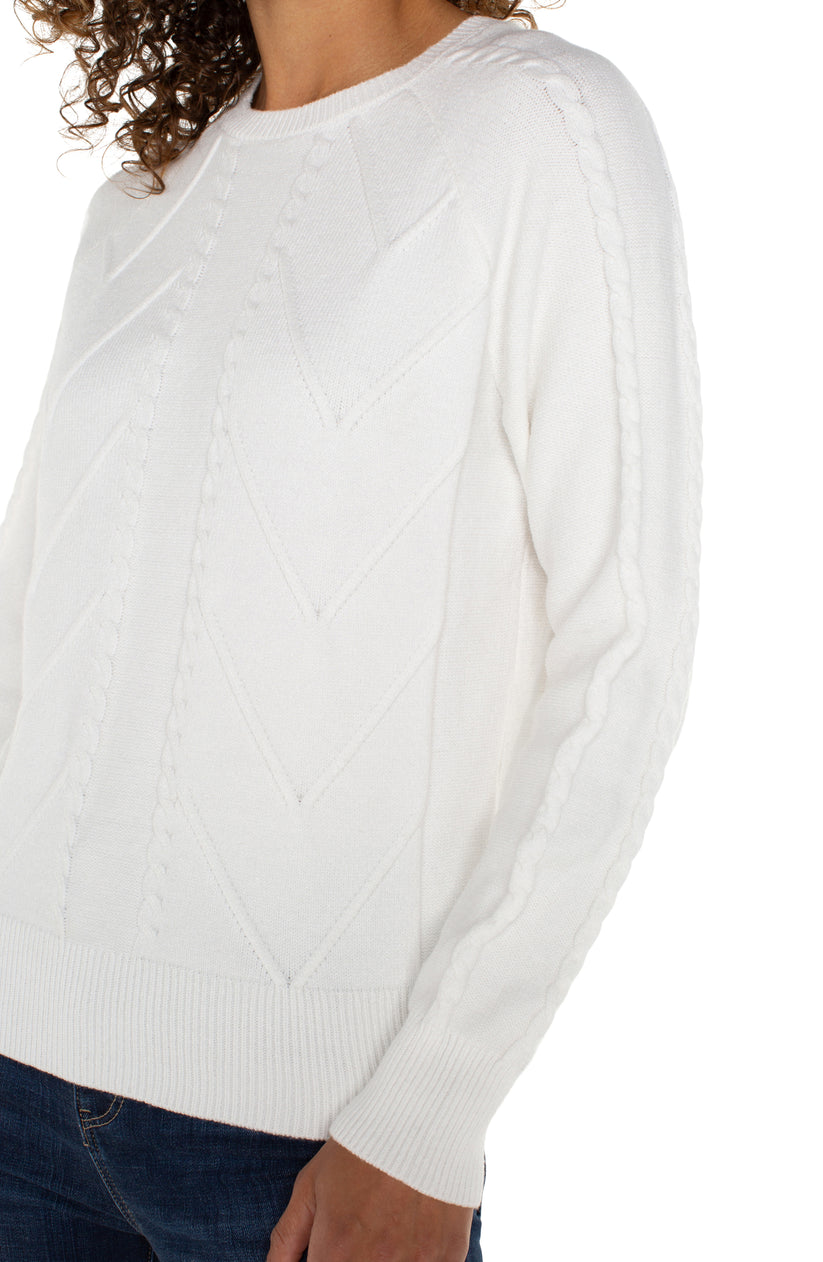 Long Sleeve Crew Neck Raglan Sweater, Porcelain | LIVERPOOL
