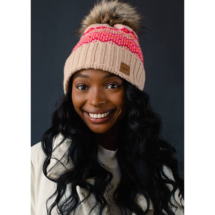 Blush, Pink & Orange Patterned Pom Hat | Panache Apparel Co.