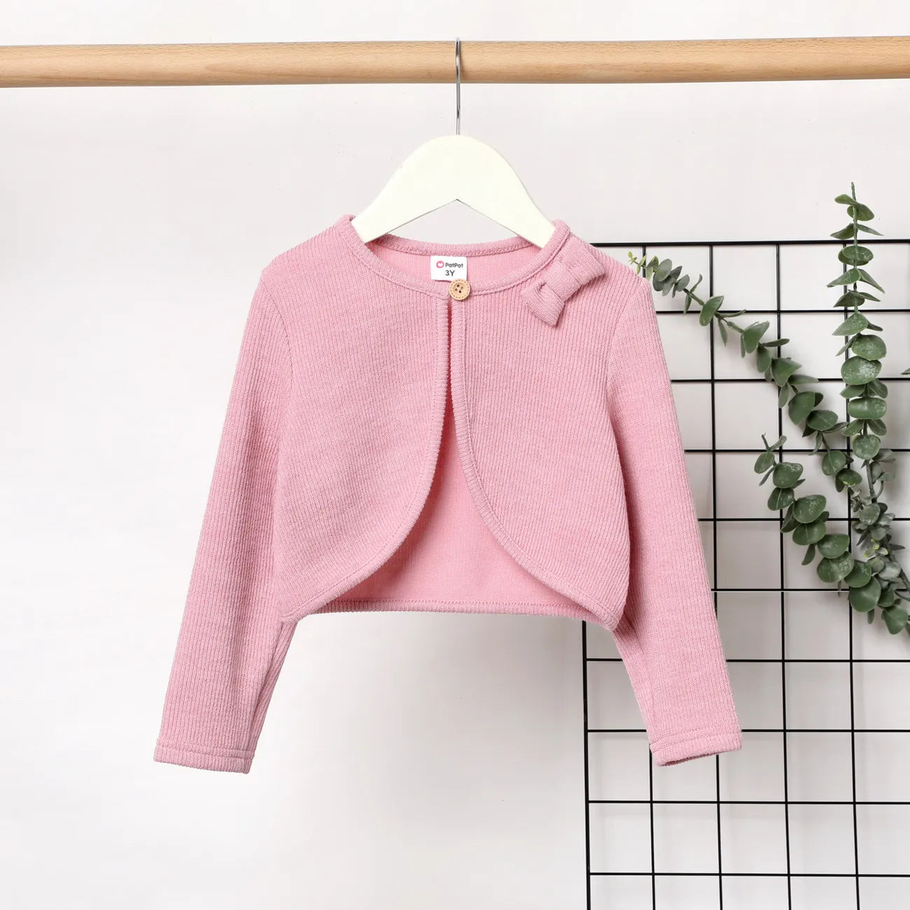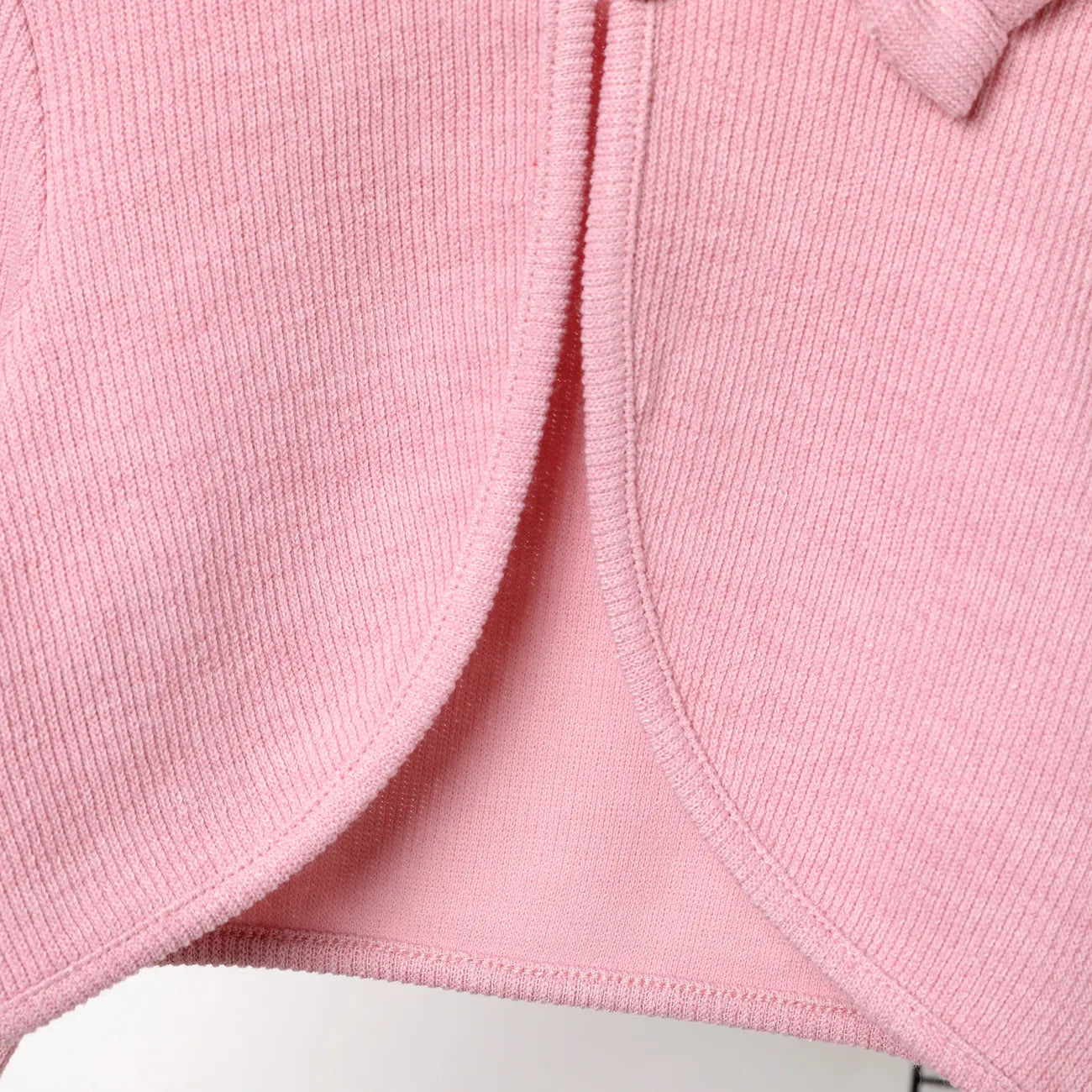 Bowknot Ribbed Cardigan, Pink | PatPat