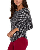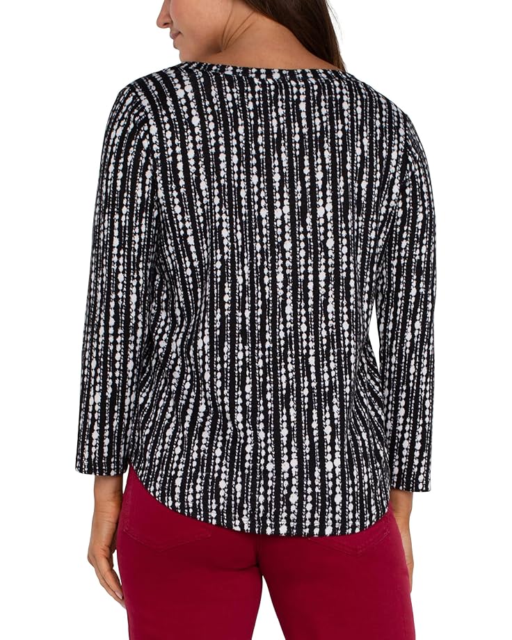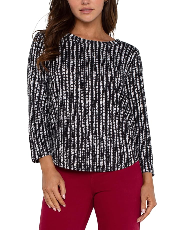 3/4 Sleeve Brushed Knit Top, Black & White Dot Striped Print | LIVERPOOL