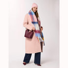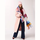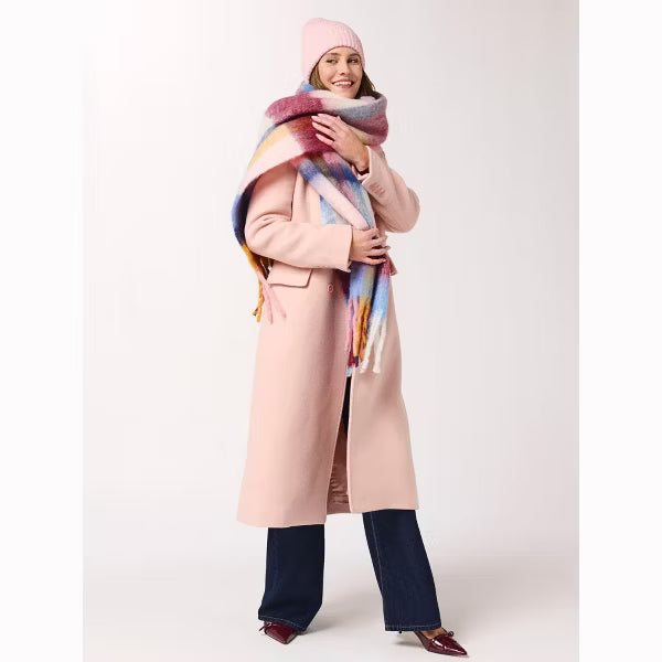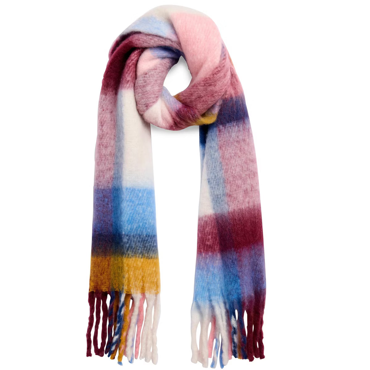 Wrap yourself in bold style with the Amelie Blue Multi Color Squares Large Scarf.
