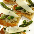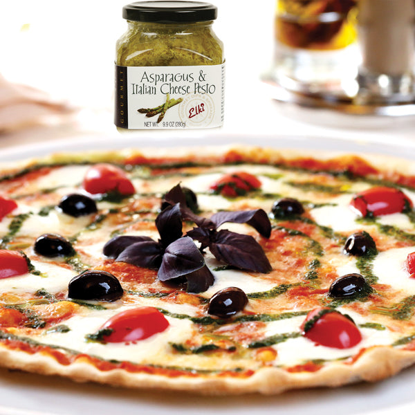 Traditionally, pestos are made with basil and pine nuts. Elki’s Asparagus Pesto, however, is a nut-free pesto that blends succulent, sun-ripened asparagus with salty, nutty Grana Padano cheese and a special blend of spices for a pesto spread that brings a lighter spin to this Mediterranean-inspired treat.