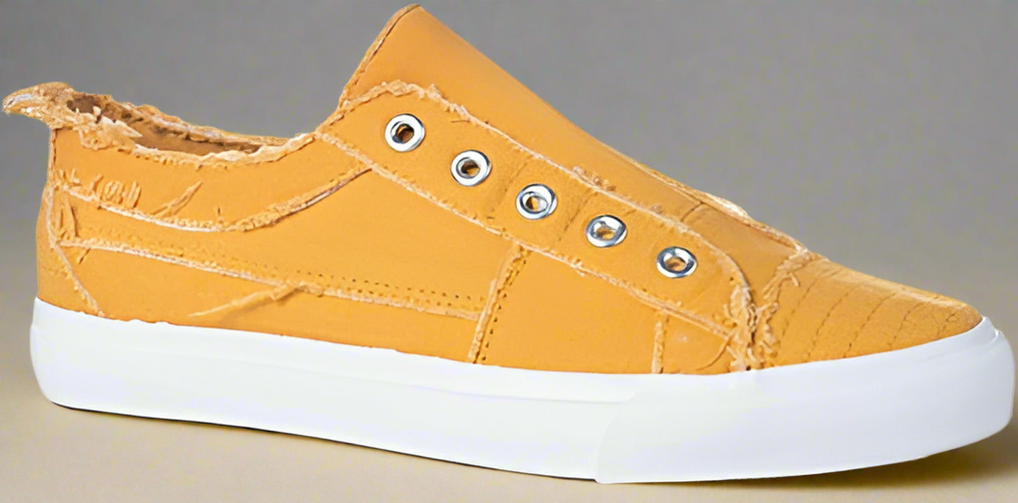 Corkys Footwear shines with trendy colors, unique designs, and cozy comfort. Step out in style any time of year with these Babalu slip-on sneakers in vibrant mustard.