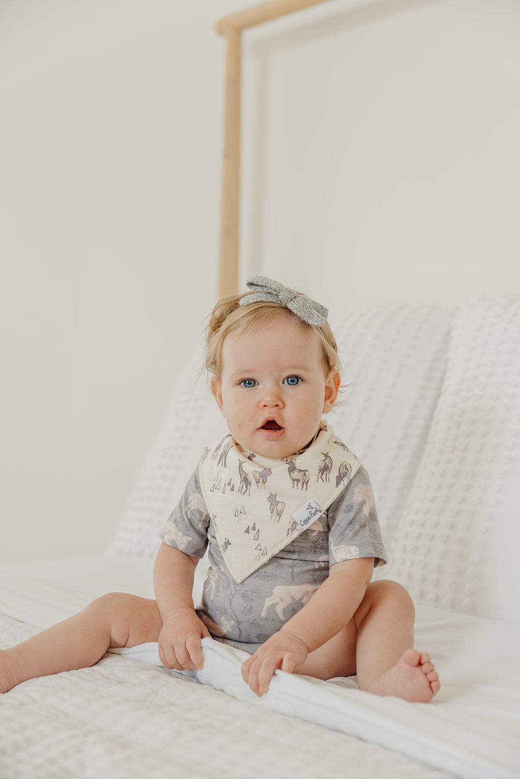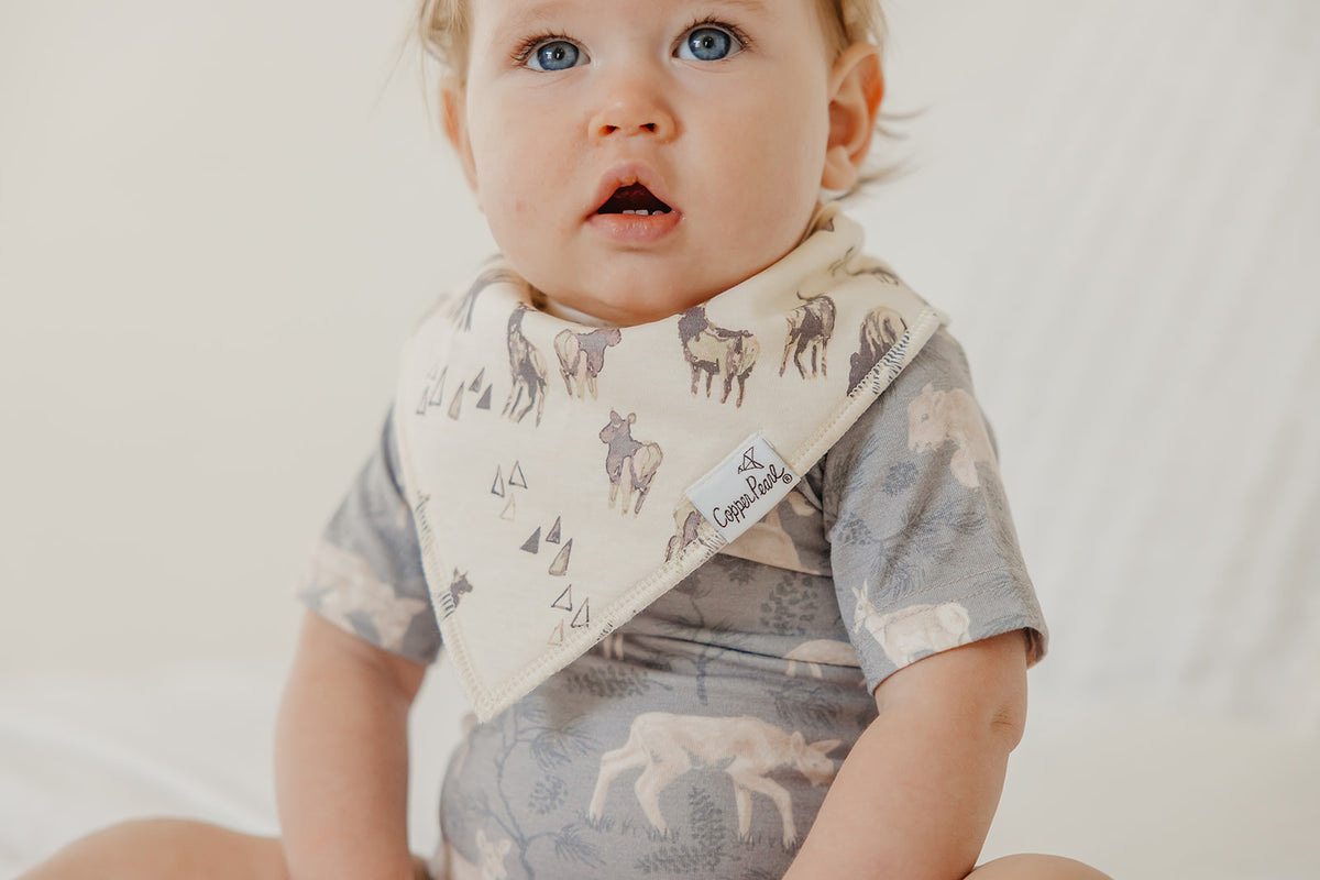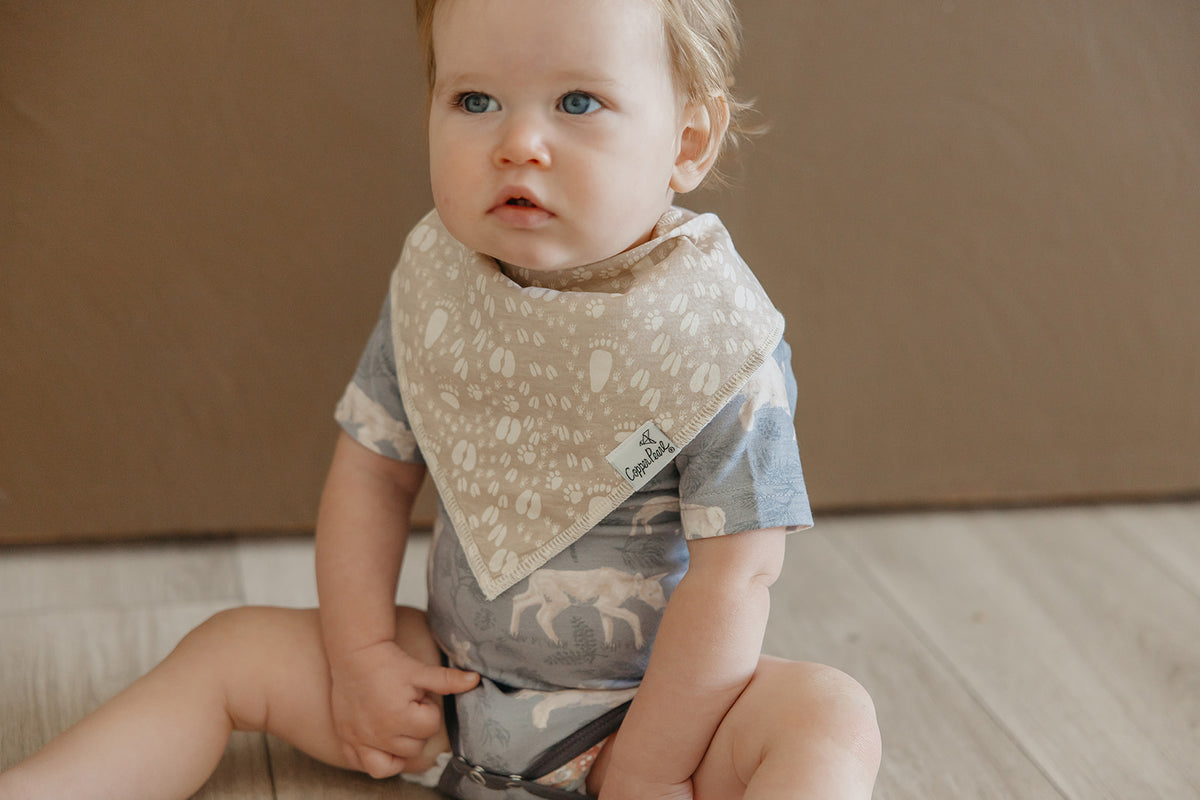 This Copper Pearl 4-pack of baby bibs makes the best gift for new parents, new grandparents, baby showers, Christmas present or for any excuse to make a baby look amazing.