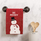 Be Merry Snowman Kitchen Towel, Red