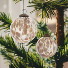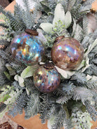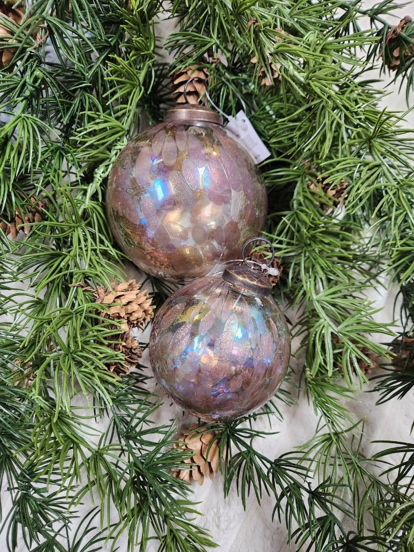These iridescent glass ornaments with glitter accents are stunning in person - the pictures don't do them justice. They add a little sparkle and shine to any tree with the right amount of color. The flitter brush strokes are inside of the ornament so they're mess free.