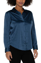 This wear with anything sateen blouse is a fabulous piece designed in our dreamy Shibori Blue hue. Pair it with trousers for the perfect workwear outfit or wear it out on the town with denim and heels for an elevated chic look!