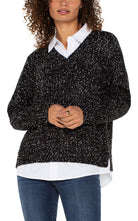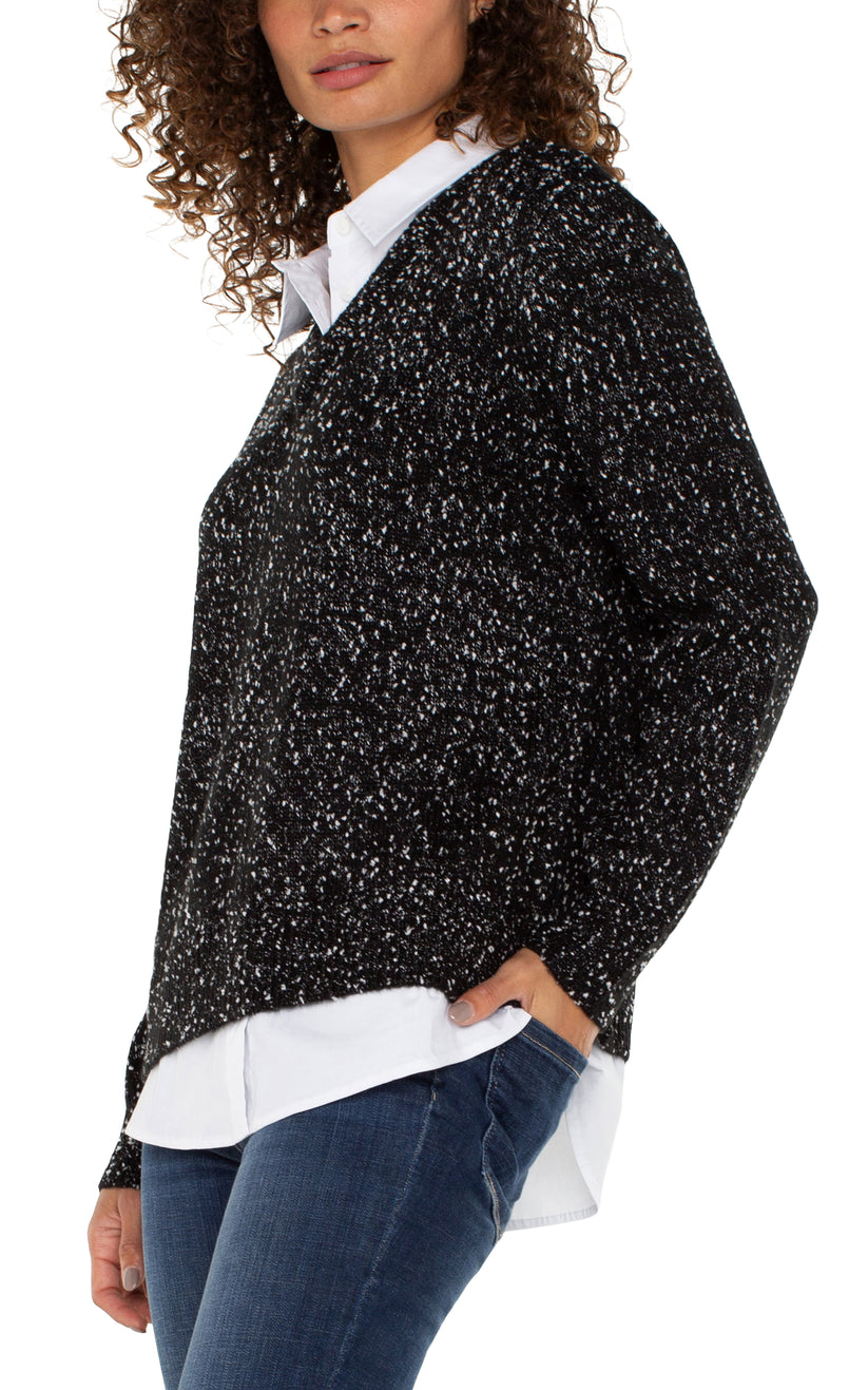 Collared Sweater, Black w/ White Flecks Twofer | Liverpool - SALE