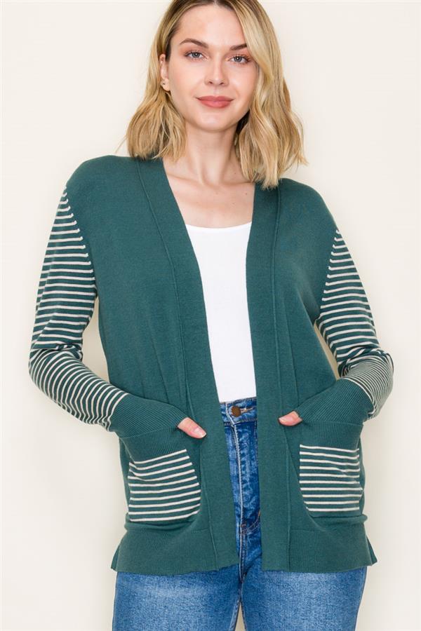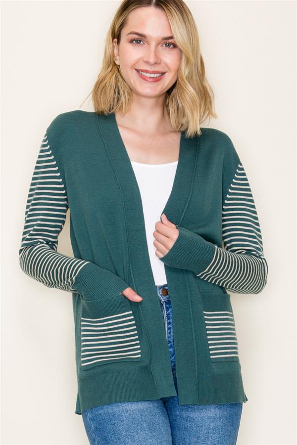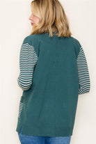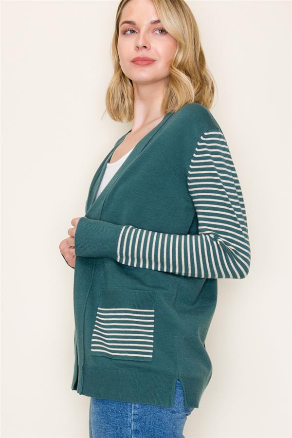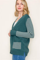 Color Blocked Patch Pockets Cardigan, Dark Jade | Staccato
