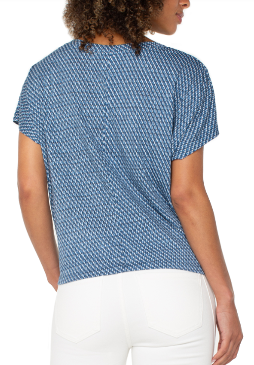 Crew Neck Knit Top w/ Front Twist Detail, Blue Multi | LIVERPOOL