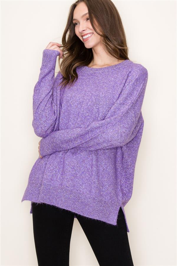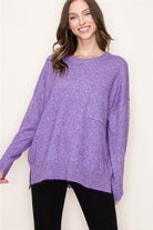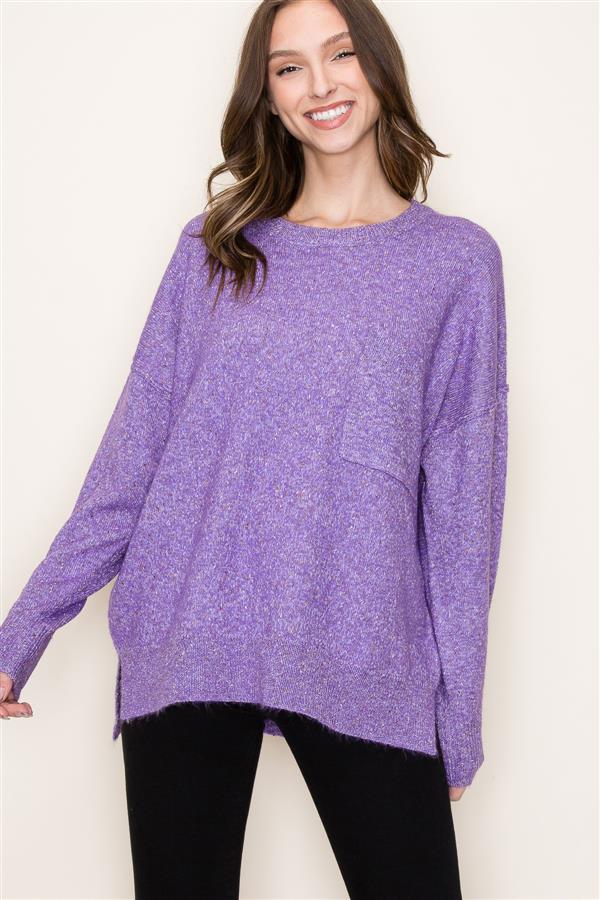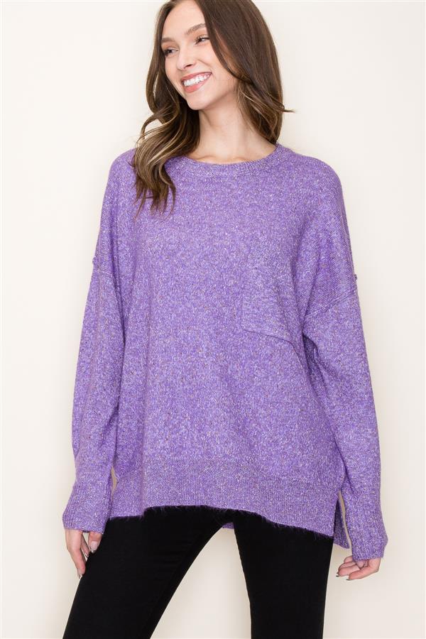 Crew Neck Sweater w/ Front Pocket, Dark Lavender | Staccato - SALE