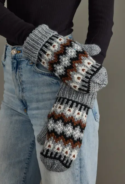 Gray, Brown & White Patterned Mittens | Panache