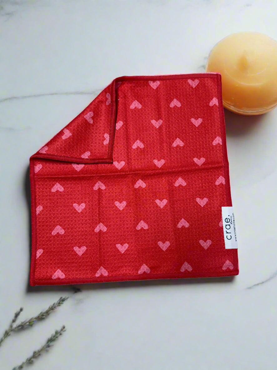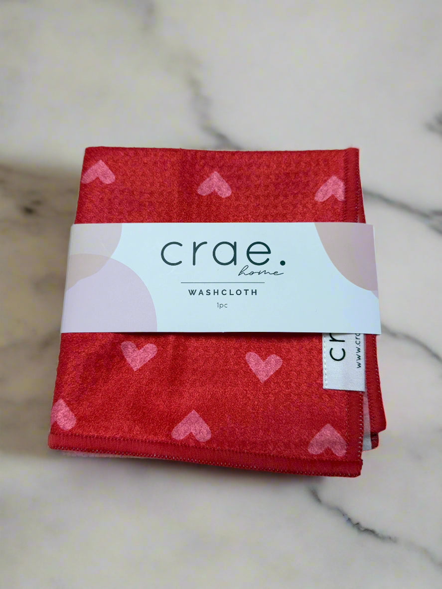 Hearts Microfiber Washcloth, Red/Pink | Crae Home