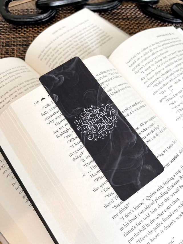 Black smoke swirled bookmarker with "In My Shadow Daddy Era" script. Perfect for all of our Fourth Wing, Iron Flame & Onyx Storm book fans! Since we know, Xaden Riorson is the ultimate Shadow Daddy.