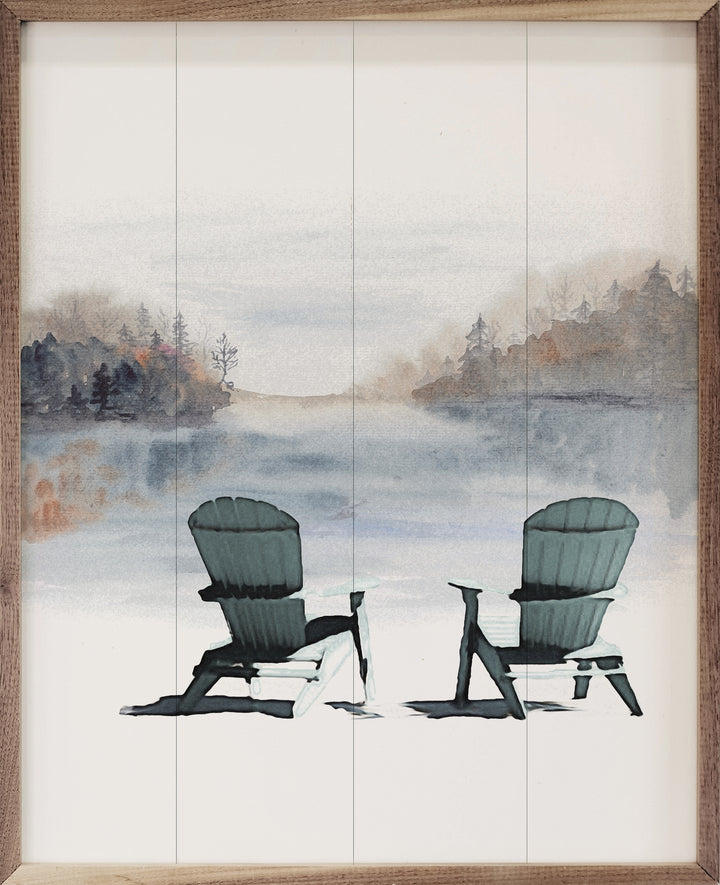 Crafted from high-quality American hardwood, this box sign features a hand-painted design printed with UV-cured ink for vibrant, long-lasting color. The natural walnut frame enhances the rustic feel, while the unique texture and wood grain ensure that each sign has its own personality. The Adirondack chairs depicted on the sign evoke relaxing moments spent on the lake, making it an ideal piece to bring the tranquility of lake living into your home.