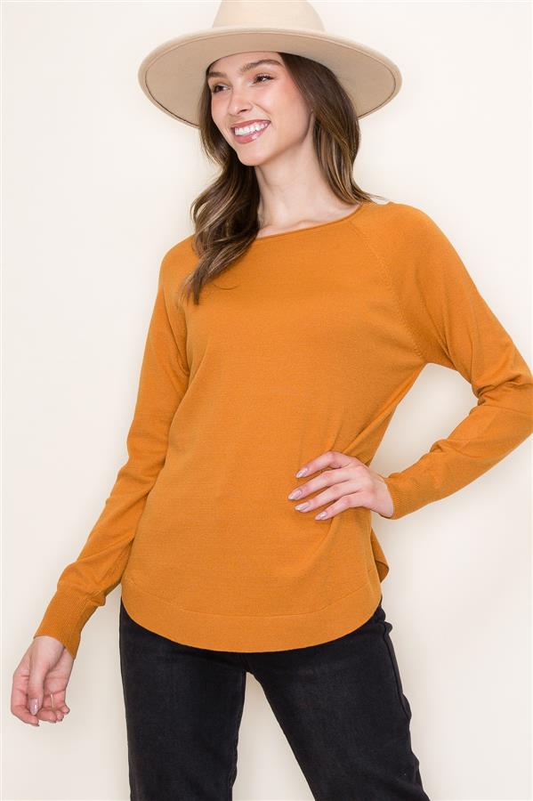 Long Sleeve Sweater w/ Boat Neck, Camel | Staccato
