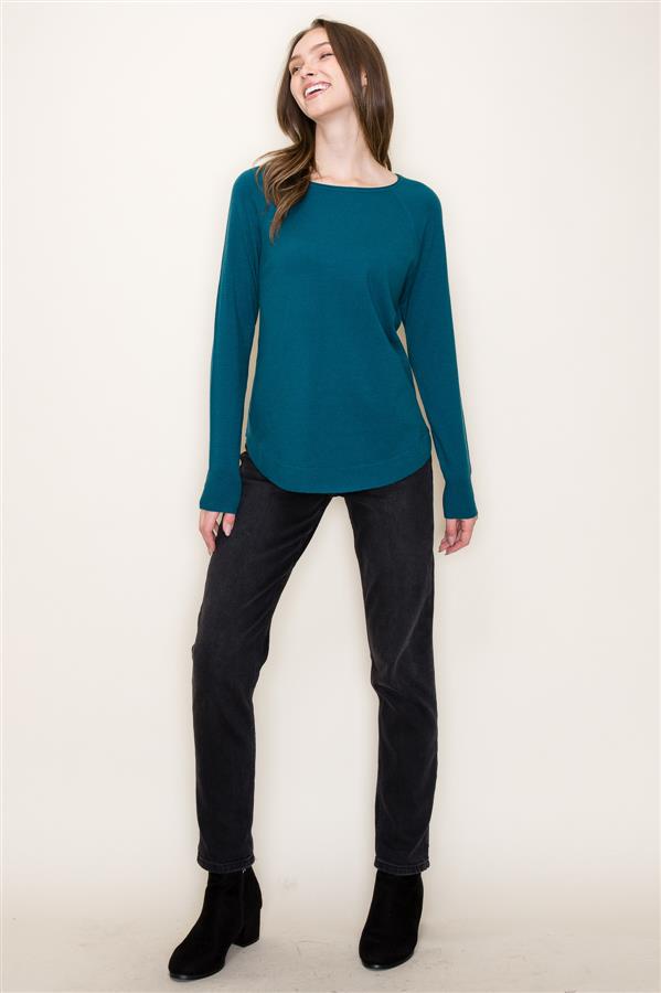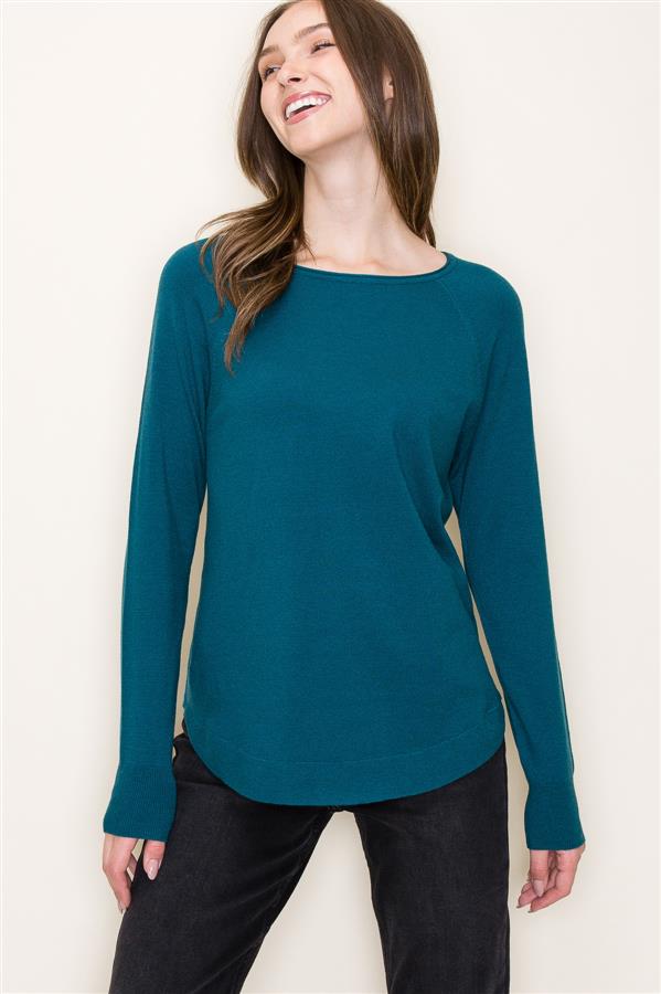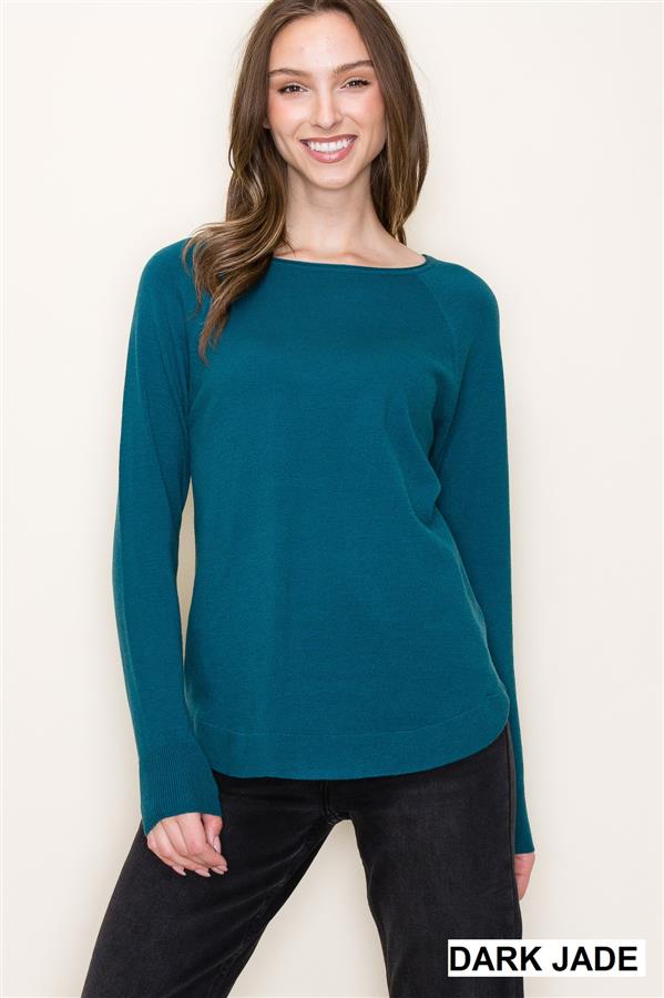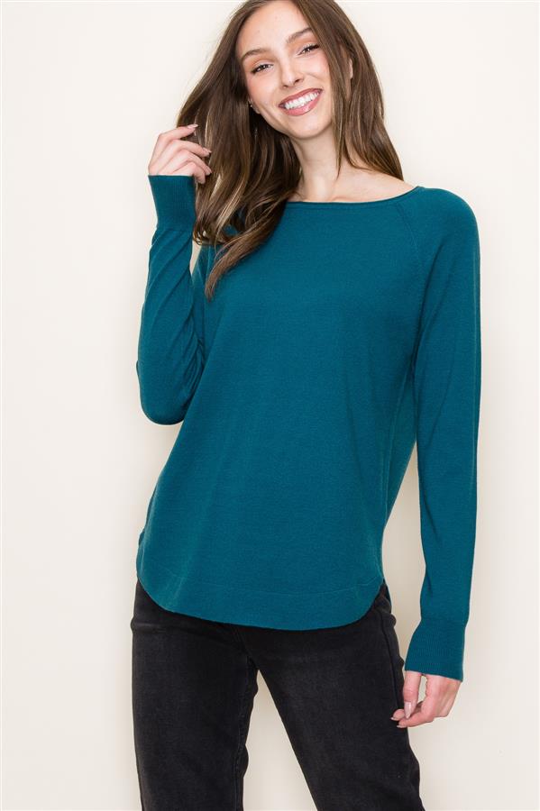 Long Sleeve Sweater w/ Boat Neck, Dark Jade | Staccato SALE